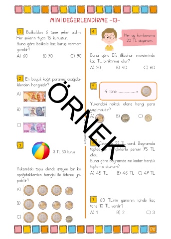 aşağıdakilerden hangisi ile ödeme ya- A) 45 TL B) 46 TL C) 47 TL