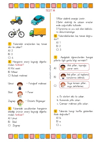 8 Hangisinin enerji kaynağı diğerle- pillerle ilgili yanlış bilgi vermiştir?