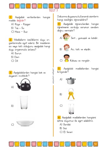 1 Aşağıdaki verilenlerden hangisi Dokunma duyusunu kullanarak cisimlerin