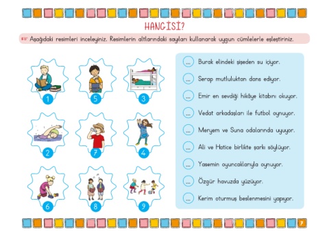+ Aşağıdaki resimleri inceleyiniz. Resimlerin altlarındaki sayıları kullanarak uygun cümlelerle eşleştiriniz.