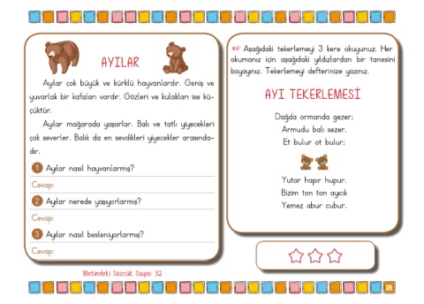 + Aşağıdaki tekerlemeyi 3 kere okuyunuz. Her