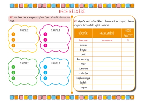+ Verilen hece sayısına göre üçer sözcük oluşturu-