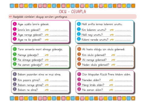 3 Ayşe ne ile gidecek? ............................ 3 Kalemi nerede unuttu? .........................