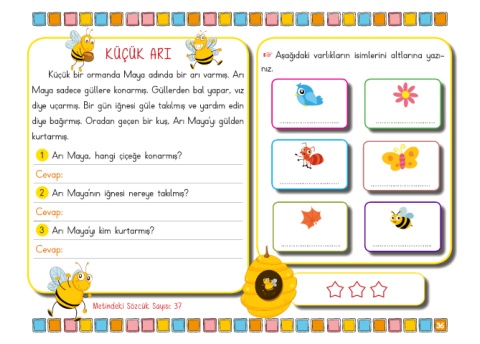 KÜÇÜK ARI + Aşağıdaki varlıkların isimlerini altlarına yazı-