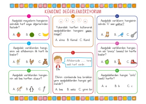 nin adı beş harften oluşur? Efe’nin cümlesinde boş bırakılan (sesli) harftir?