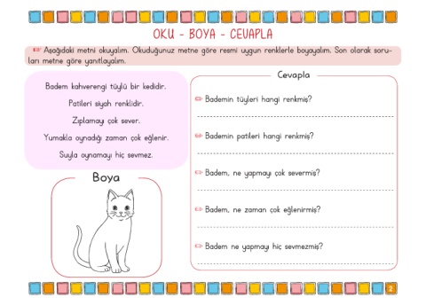 + Aşağıdaki metni okuyalım. Okuduğunuz metne göre resmi uygun renklerle boyayalım. Son olarak soru-