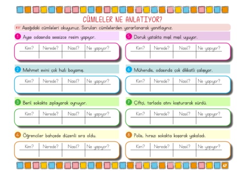 + Aşağıdaki cümleleri okuyunuz. Soruları cümlelerden yararlanarak yanıtlayınız.