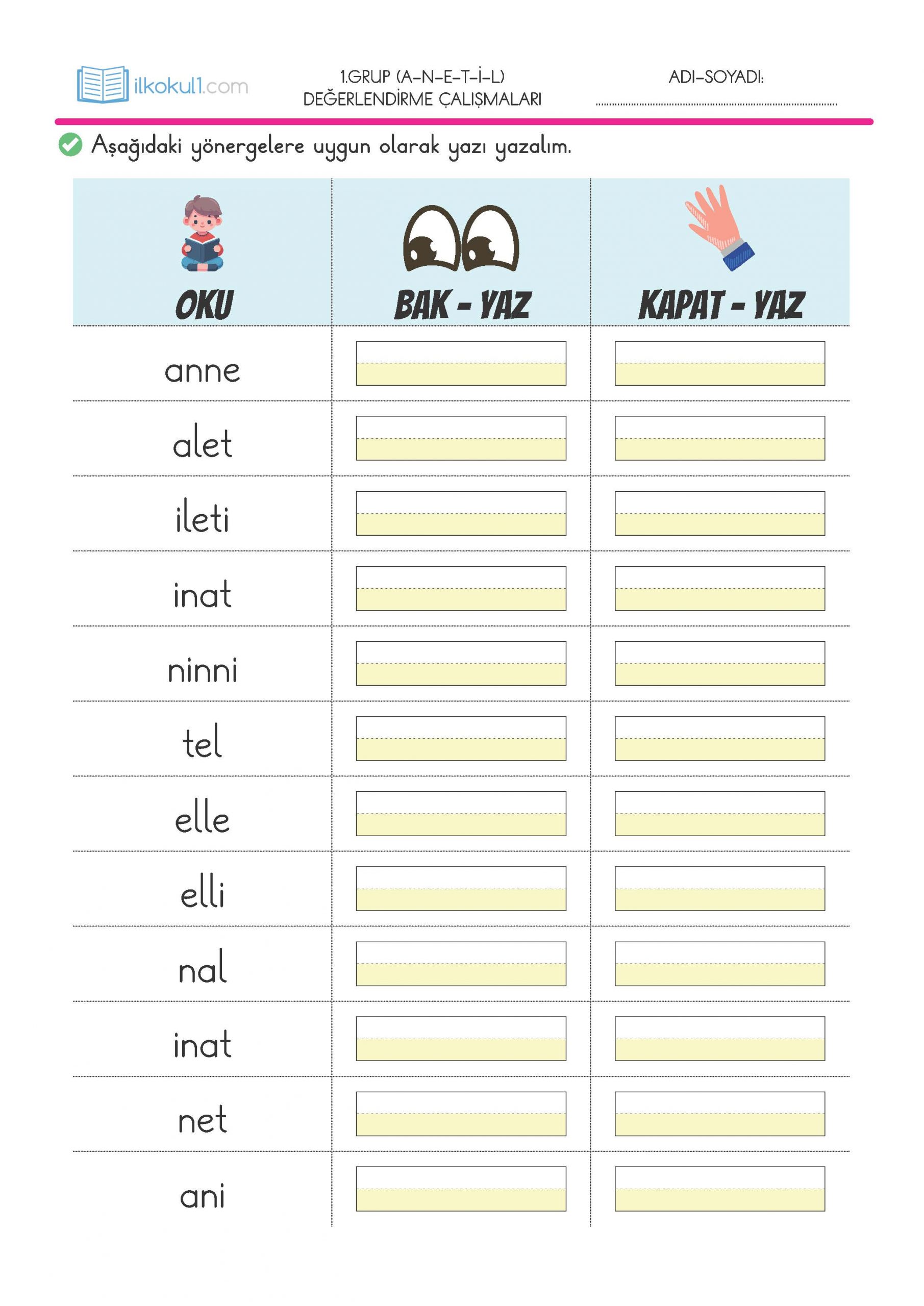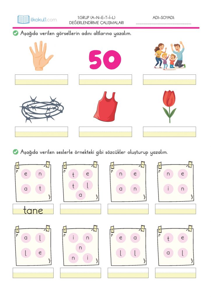sınıf okuma yazma öğretiminde A, N, E, T, İ, L harflerinden oluşan 1. grup sesler, öğrencilerin dil becerilerini geliştirmeleri için temel yapı taşlarıdır. Bu harflerle yapılan alıştırmalar, çocukların yazma ve okuma kabiliyetini adım adım ilerletirken eğlenceli ve pratik bir öğrenme deneyimi sunar.
