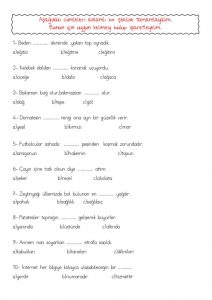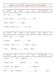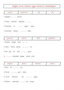 1. Sınıf Cümle Tamamlama Etkinlik Sayfaları – Dik Temel Harfler-