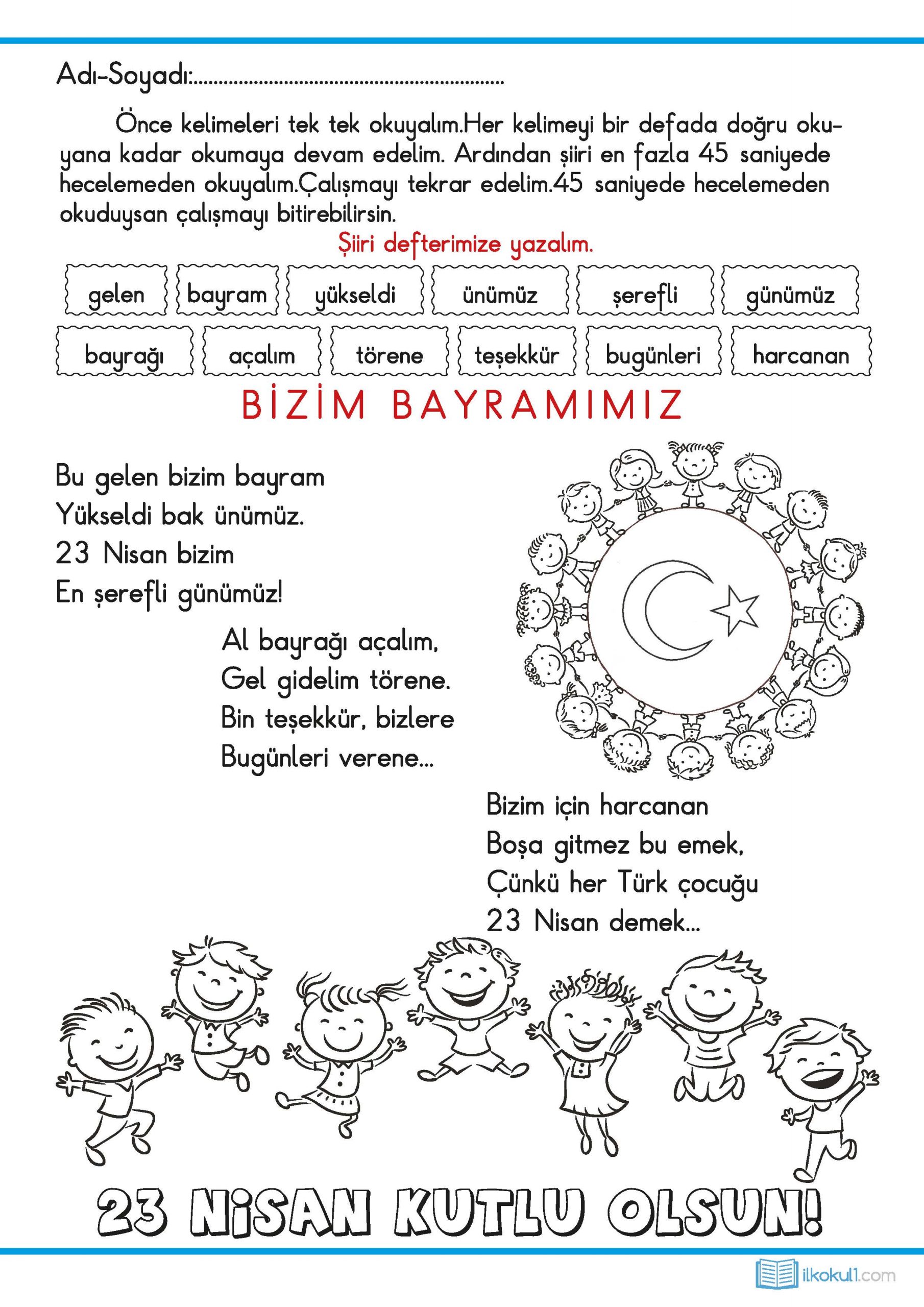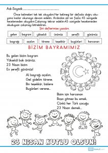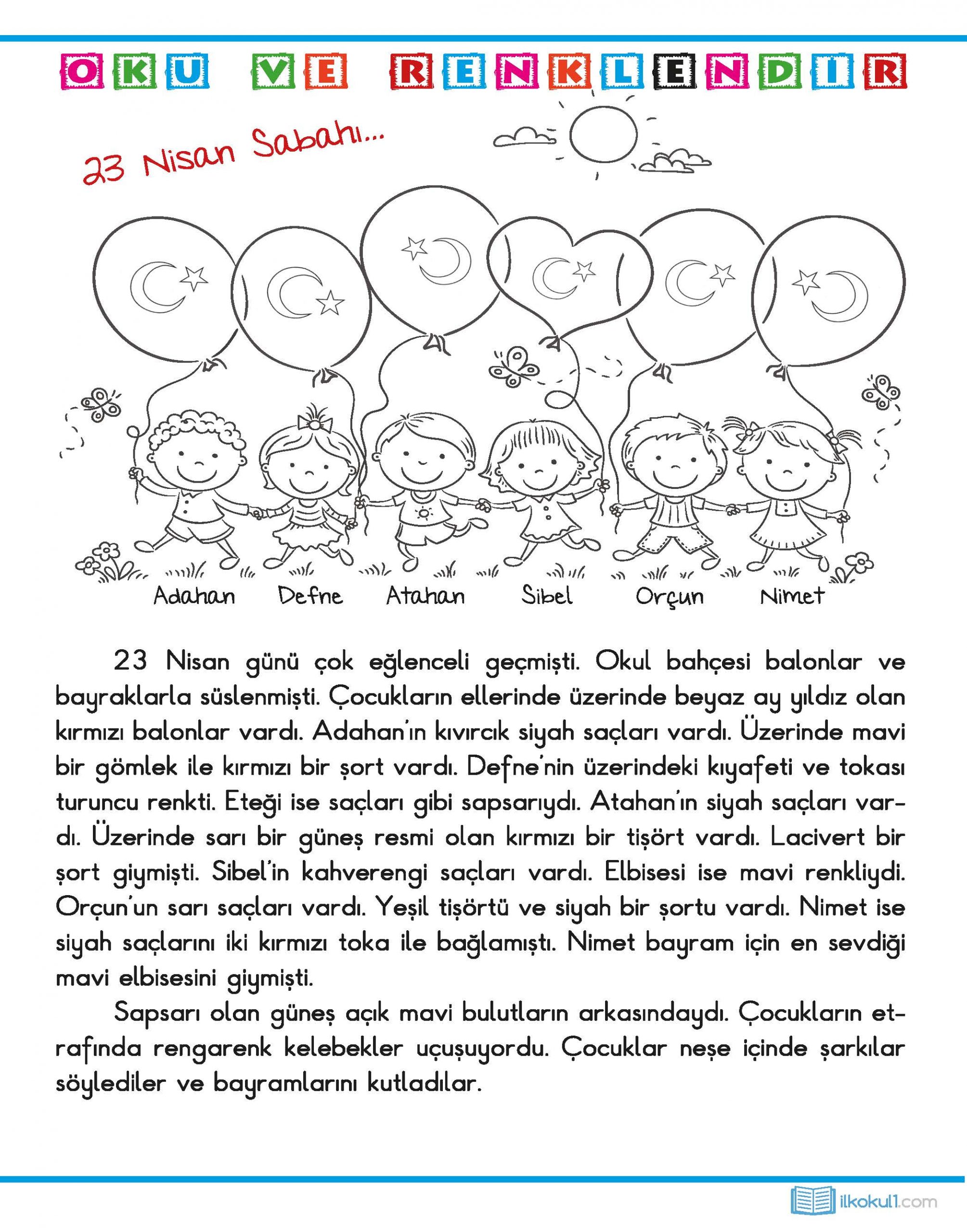 1. Sınıf Türkçe 23 Nisan Okuma Renklendir Çal...