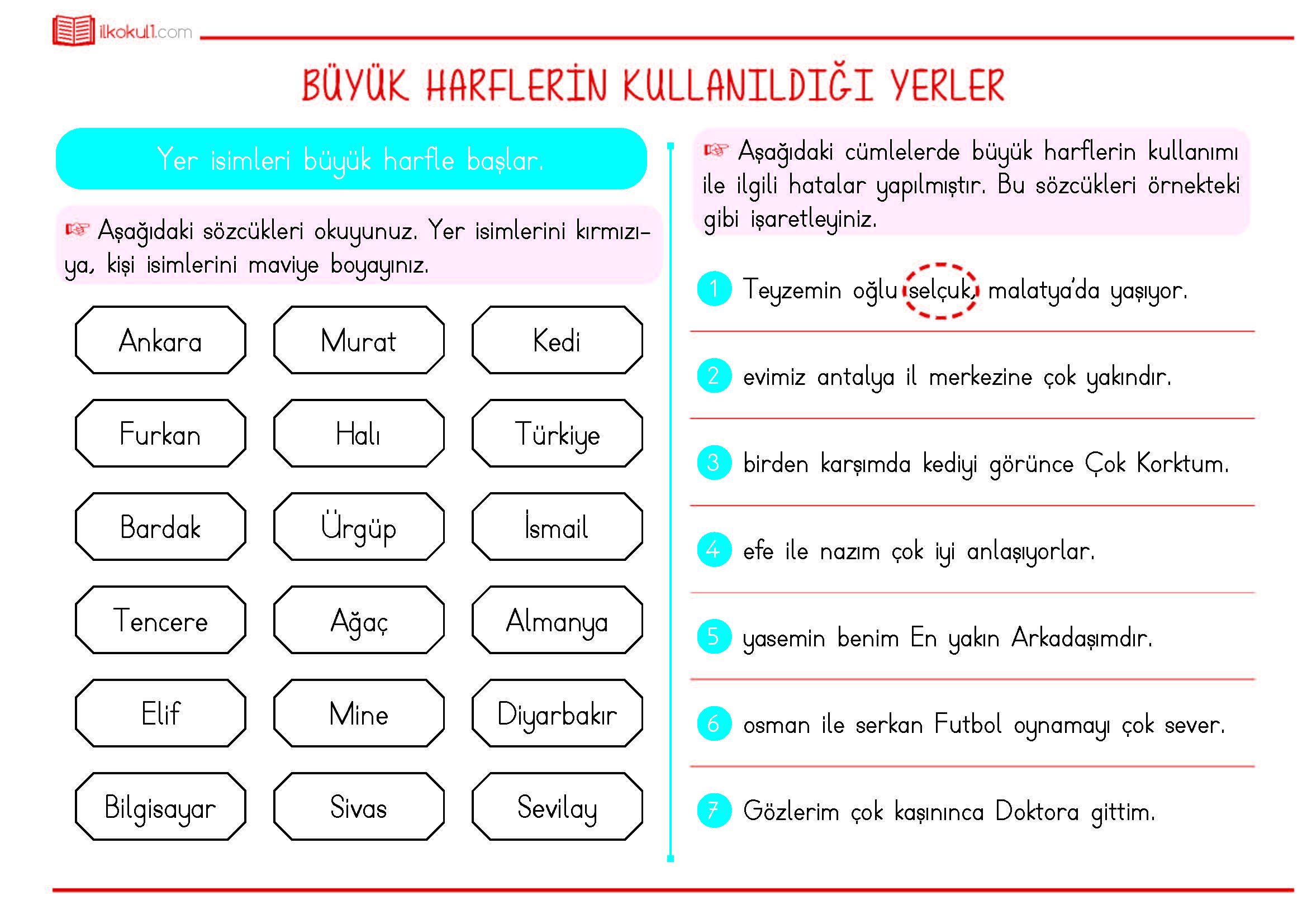- 1. Sınıf Büyük Harflerin Kullanıldığı Yerler