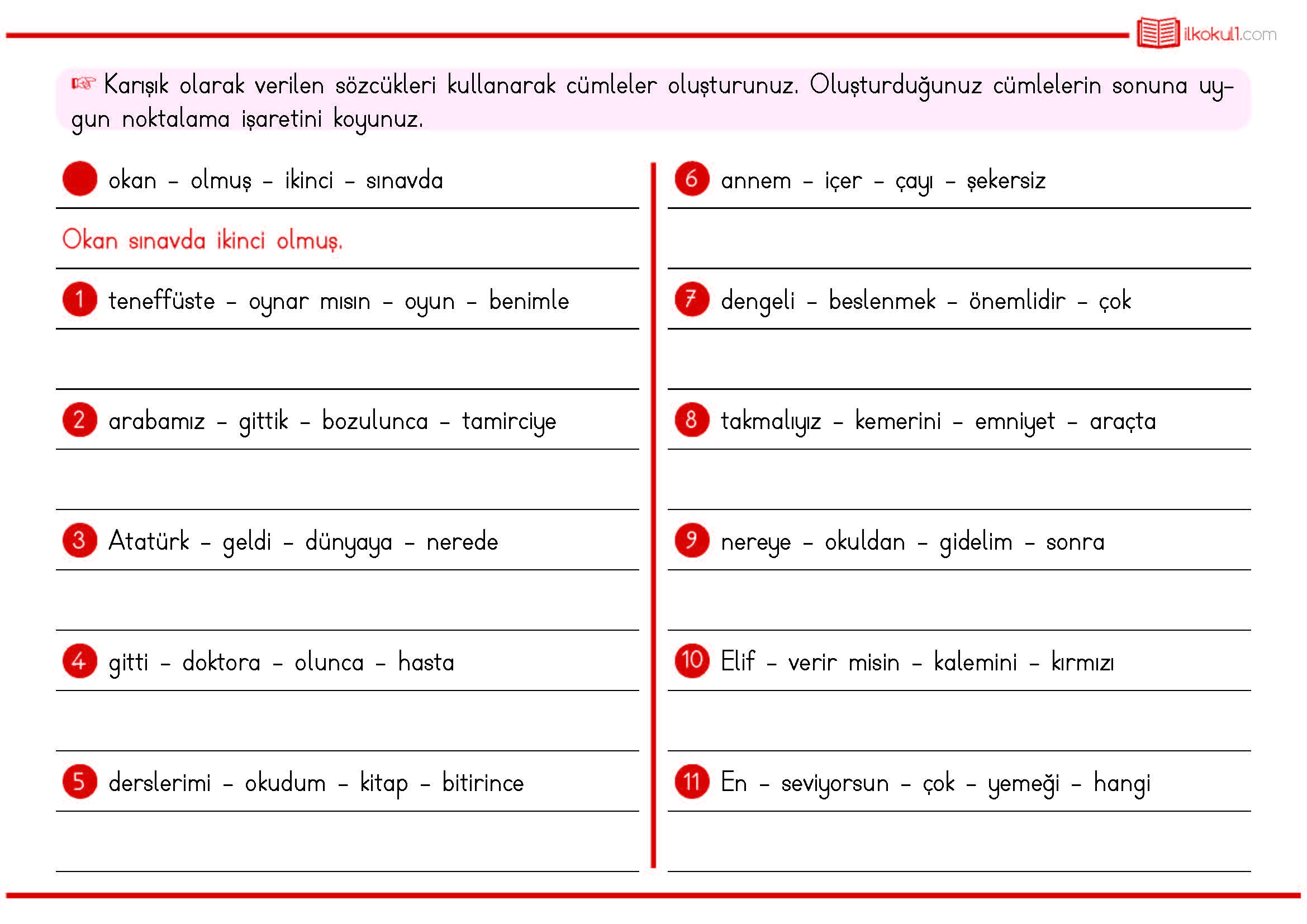 1.Sınıf Günlük Ödevler 2. Dönem 11. Hafta Konu Başlıkları:
