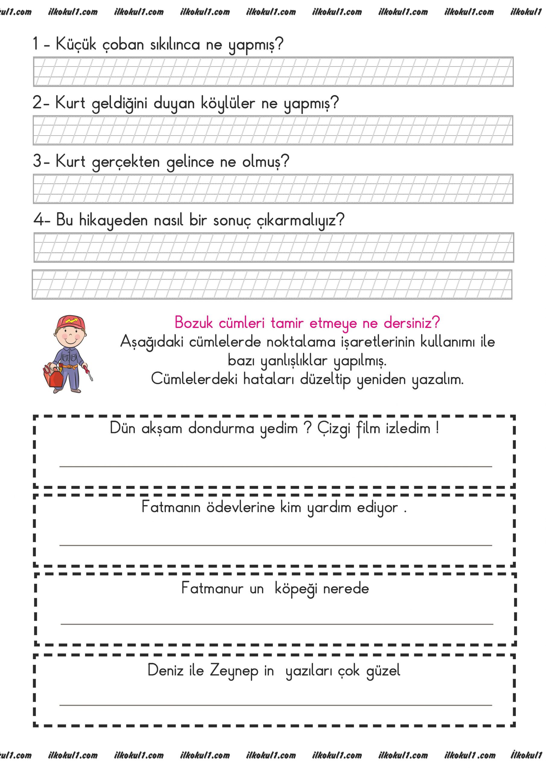 1.Sınıf Günlük Ödevler 2. Dönem 13. Hafta Konu Başlıkları: