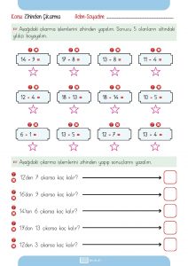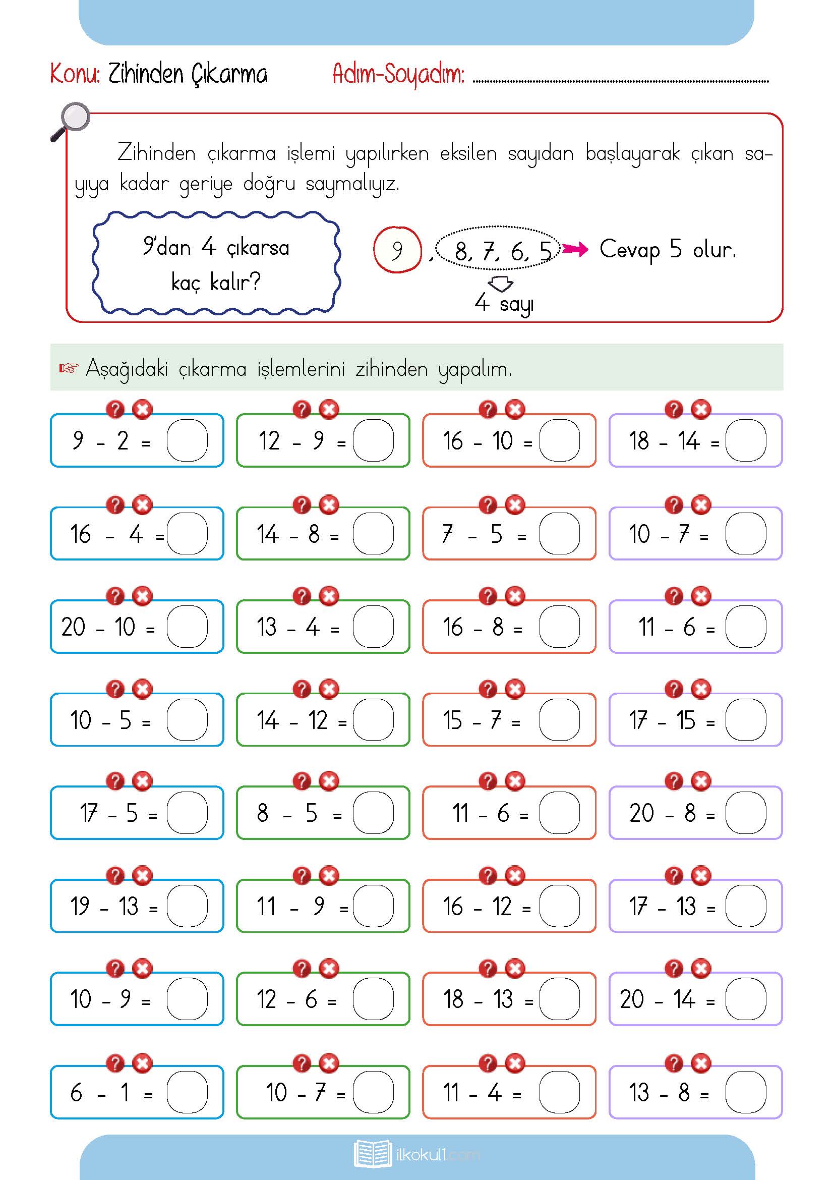 1. Sınıf Matematik -Zihinden Çıkarma Etkinlikl...