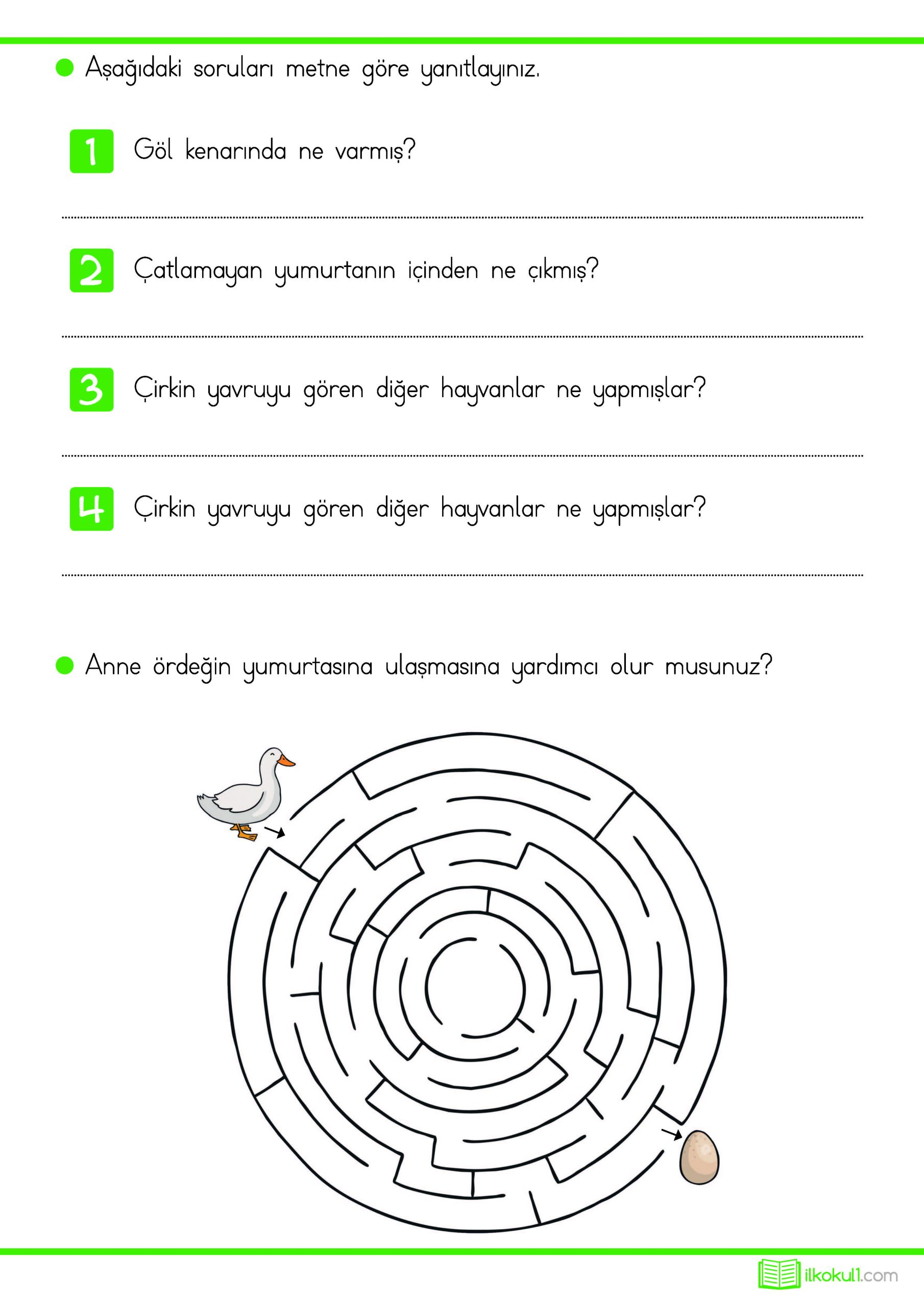 1. Sınıf Türkçe Etkinlikleri -Çirkin Ördek Y...
