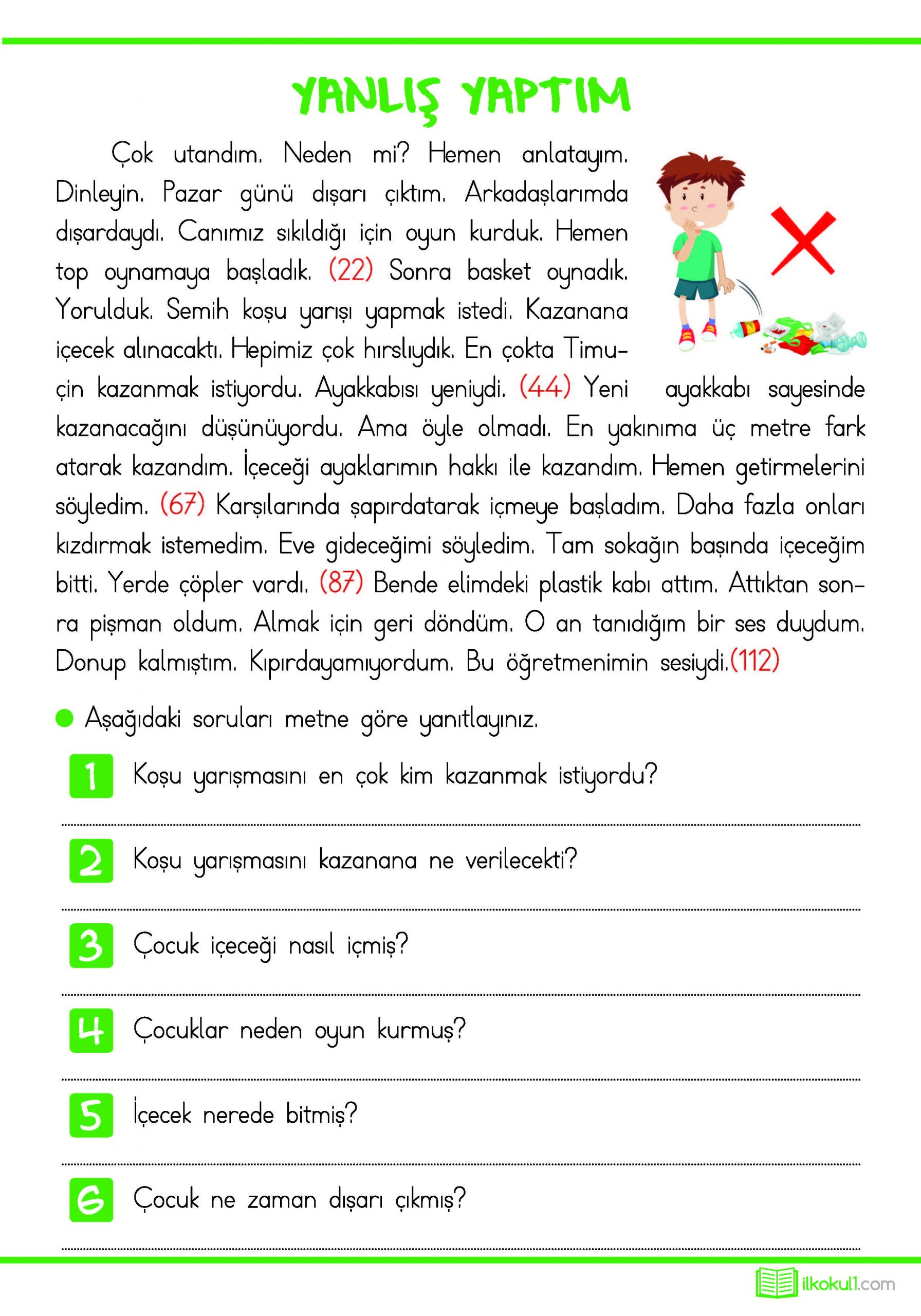 1. Sınıf Türkçe Etkinlikleri -Yanlış Yaptım...