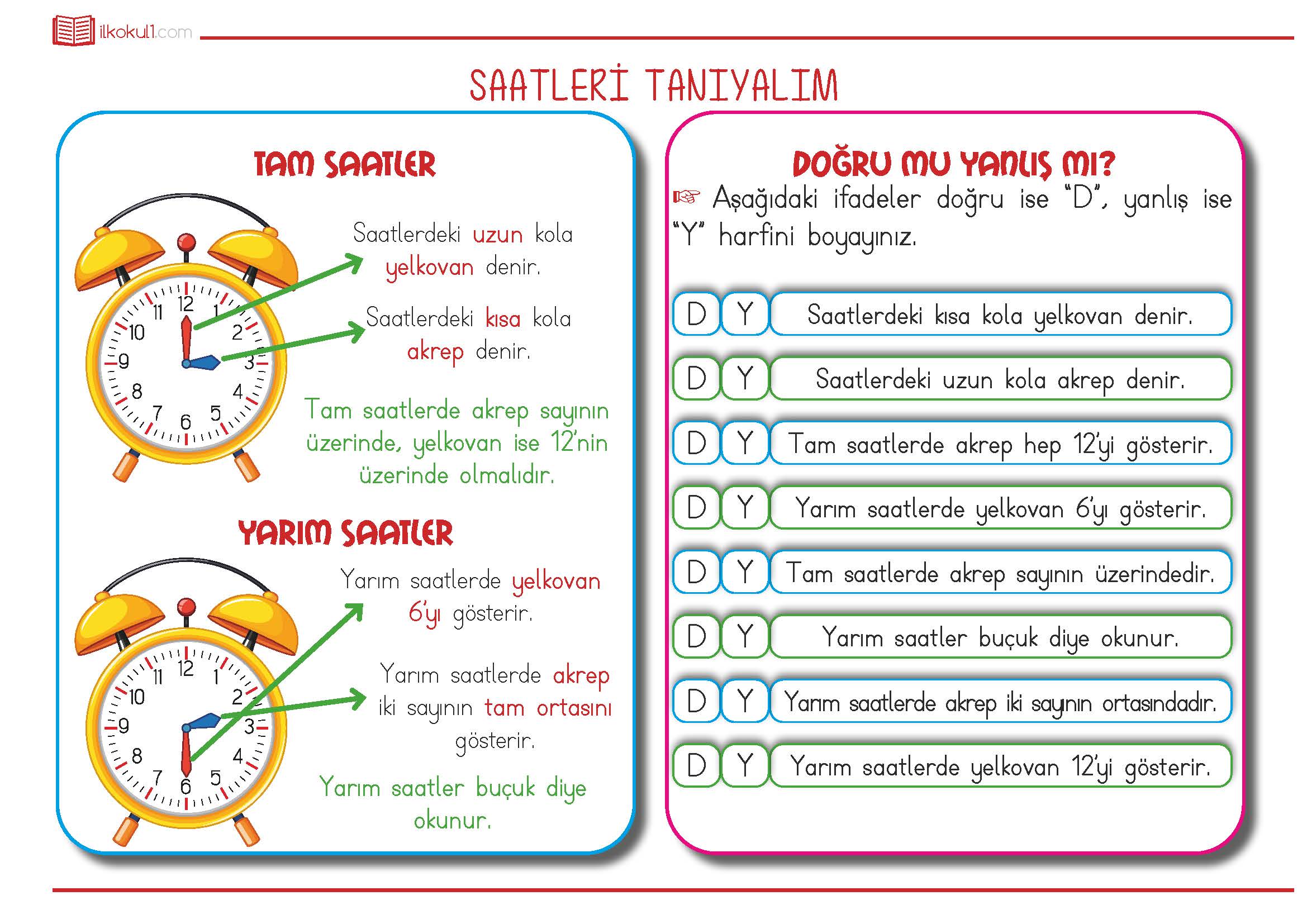 - 1. Sınıf Saatler Konu Anlatımı
