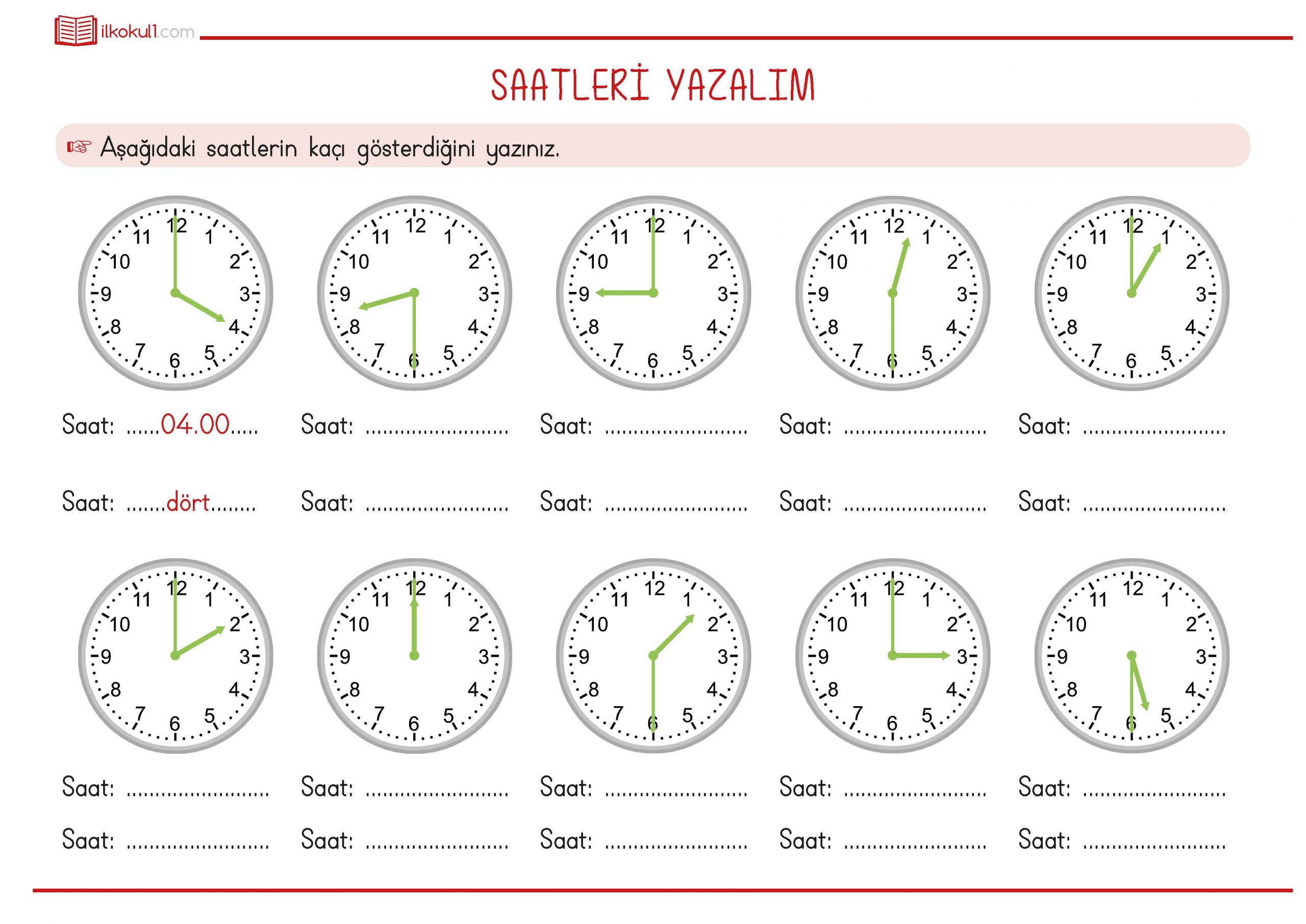 1. Sınıf Matematik -Saatleri Yazma Etkinliği 2-