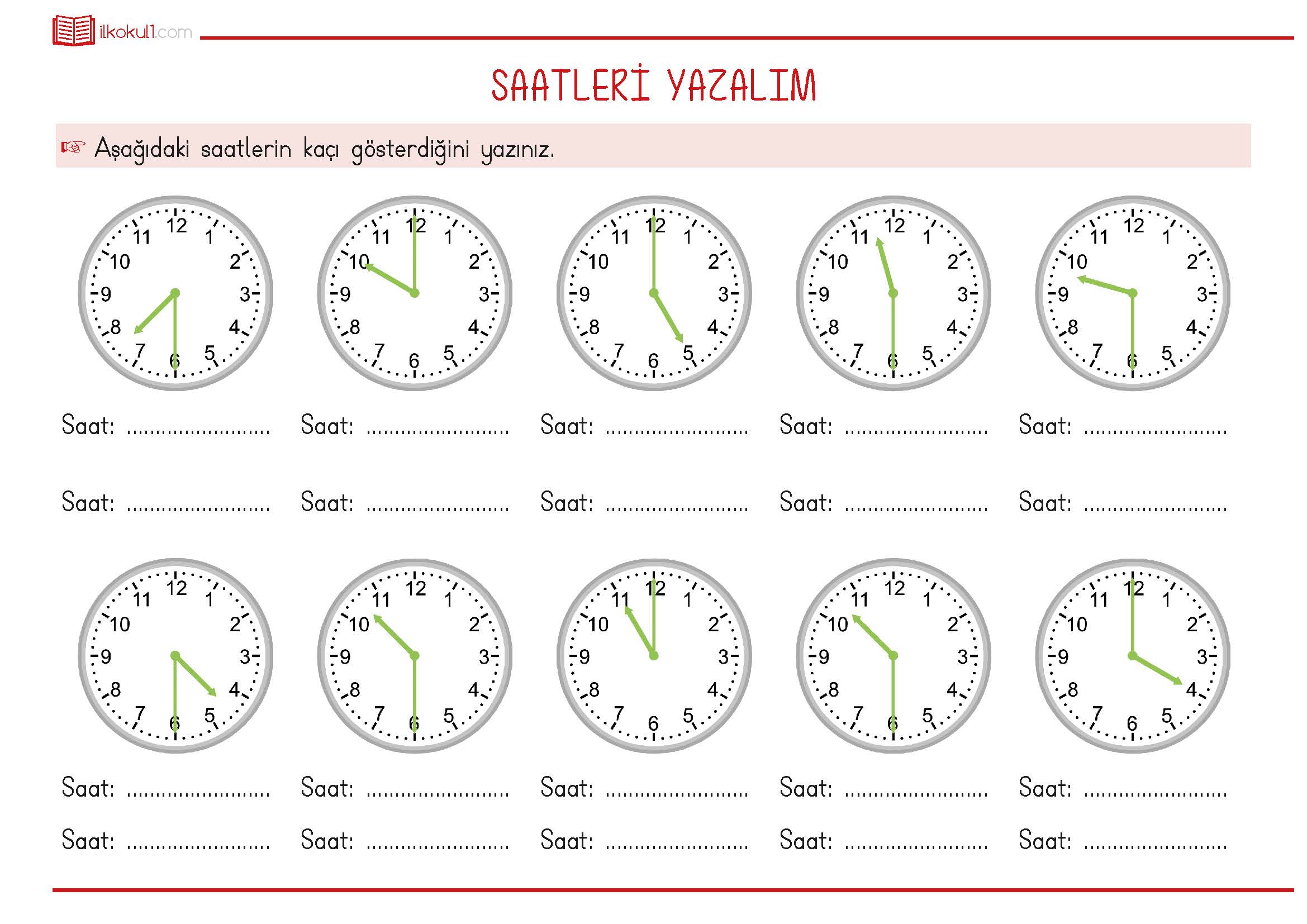 1. Sınıf Matematik -Saatleri Yazma Etkinliği 1-