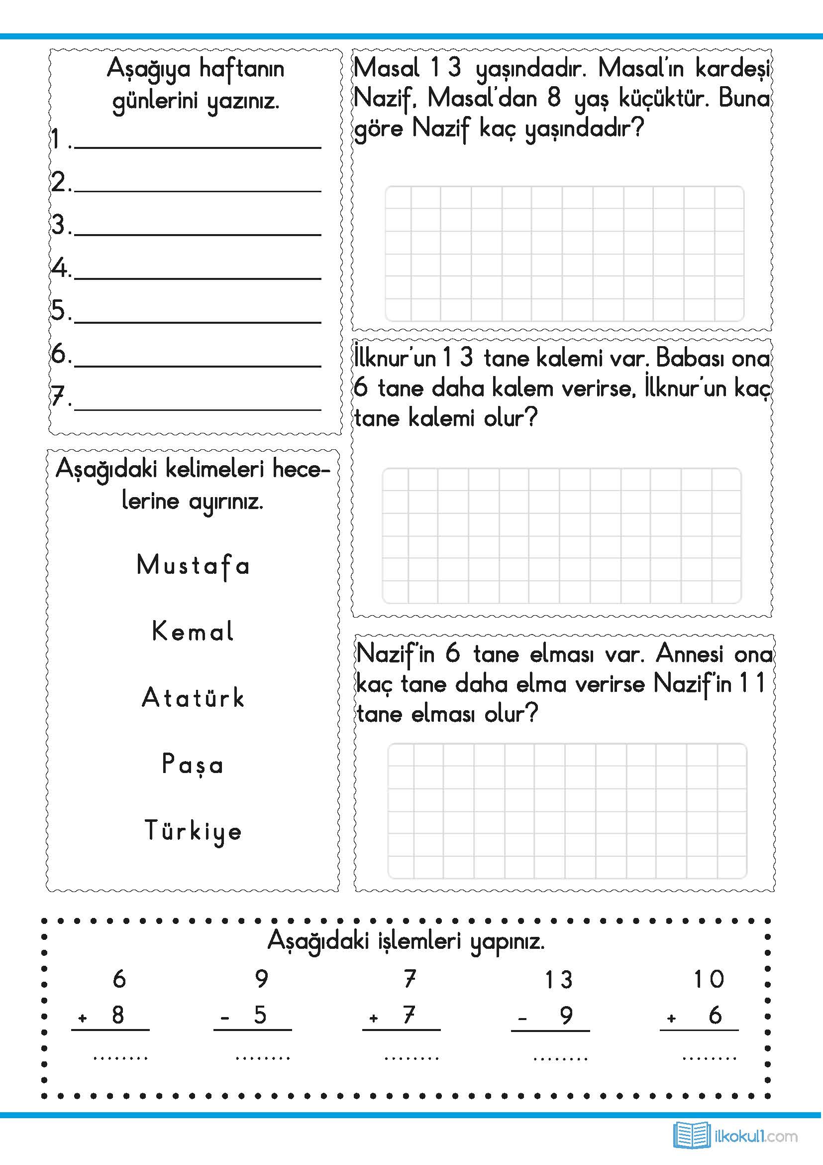 1. Sınıf Matematik -Saatler Çalışma Sayfası ...