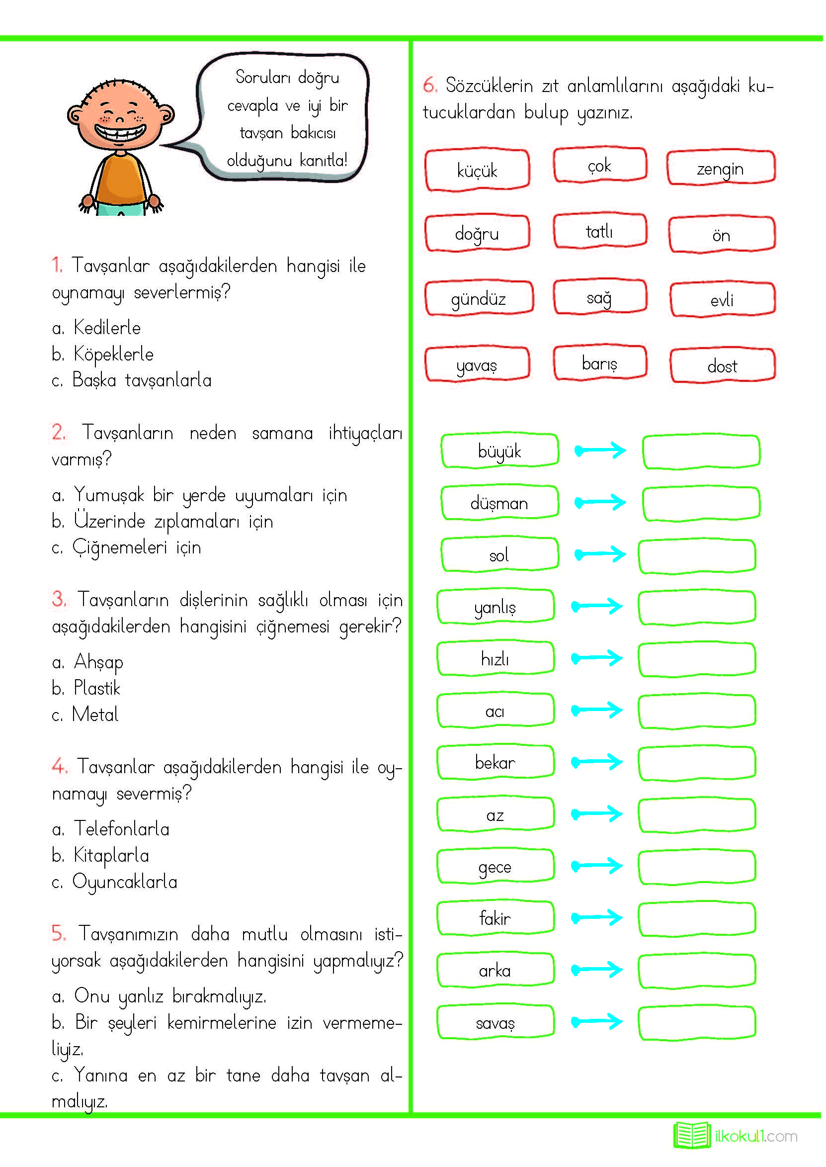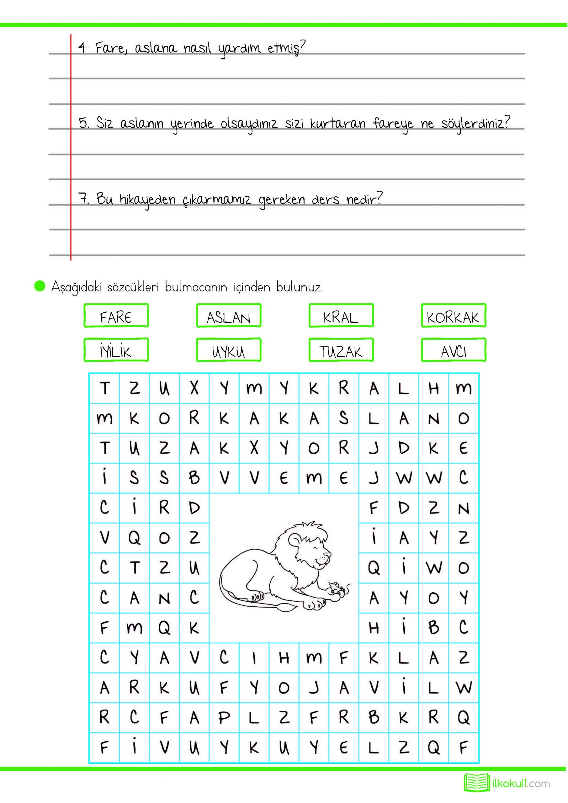 1. Sınıf Türkçe Okuma Anlama Çalışması -Ta...