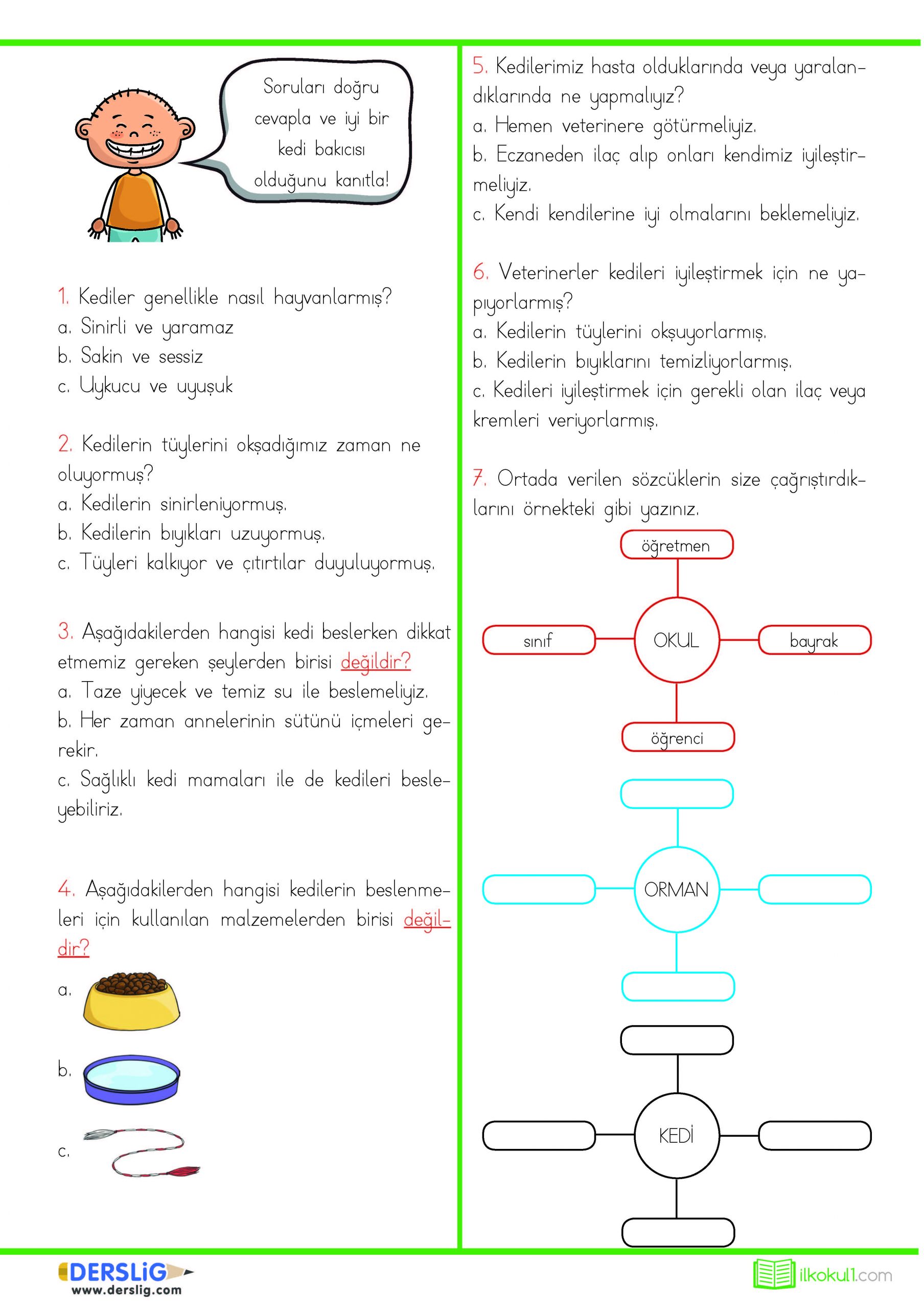 1. Sınıf Türkçe Okuma Anlama Çalışması -Ke...