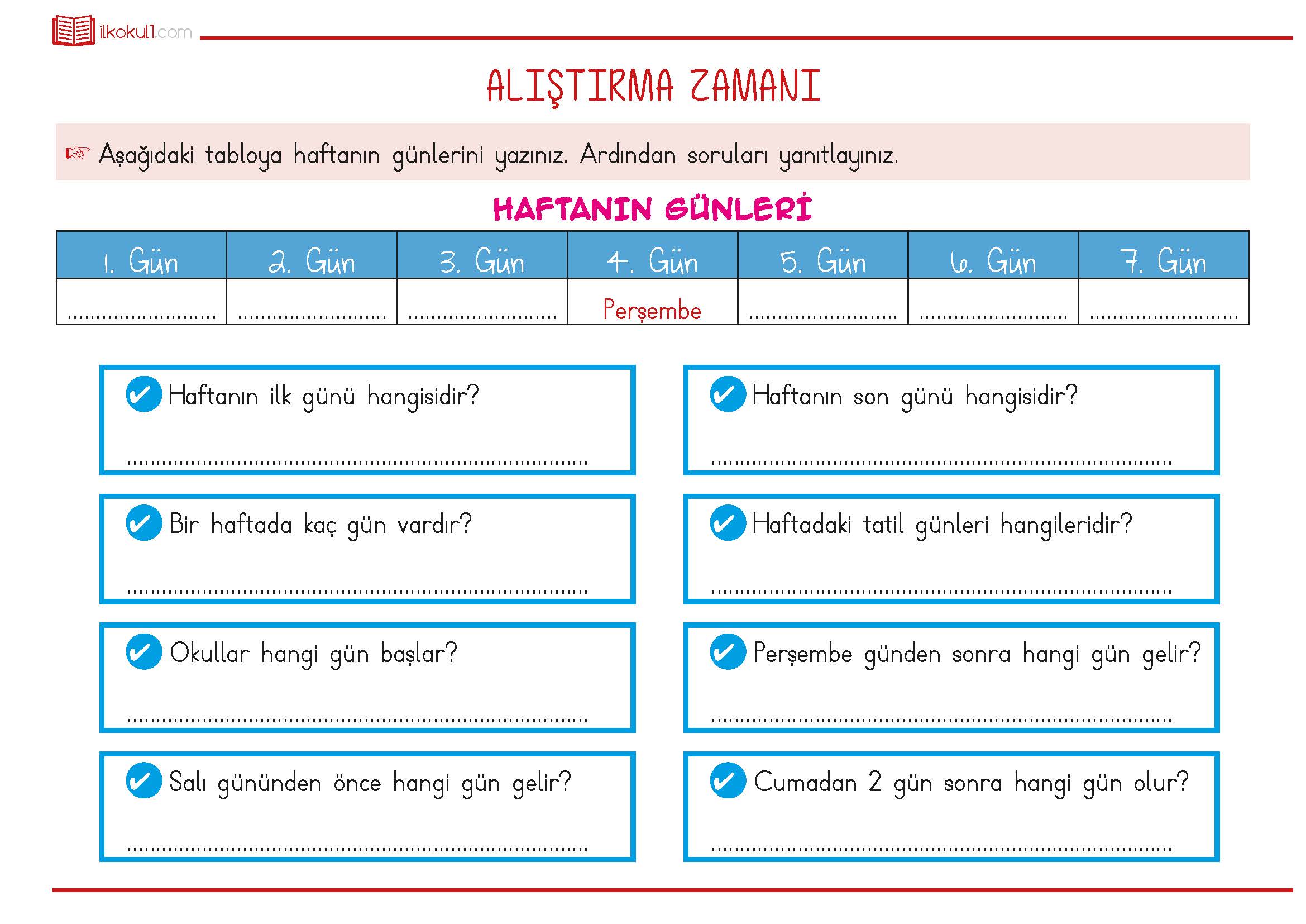 - Gün, Hafta, Ay, Yıl Çalışmaları