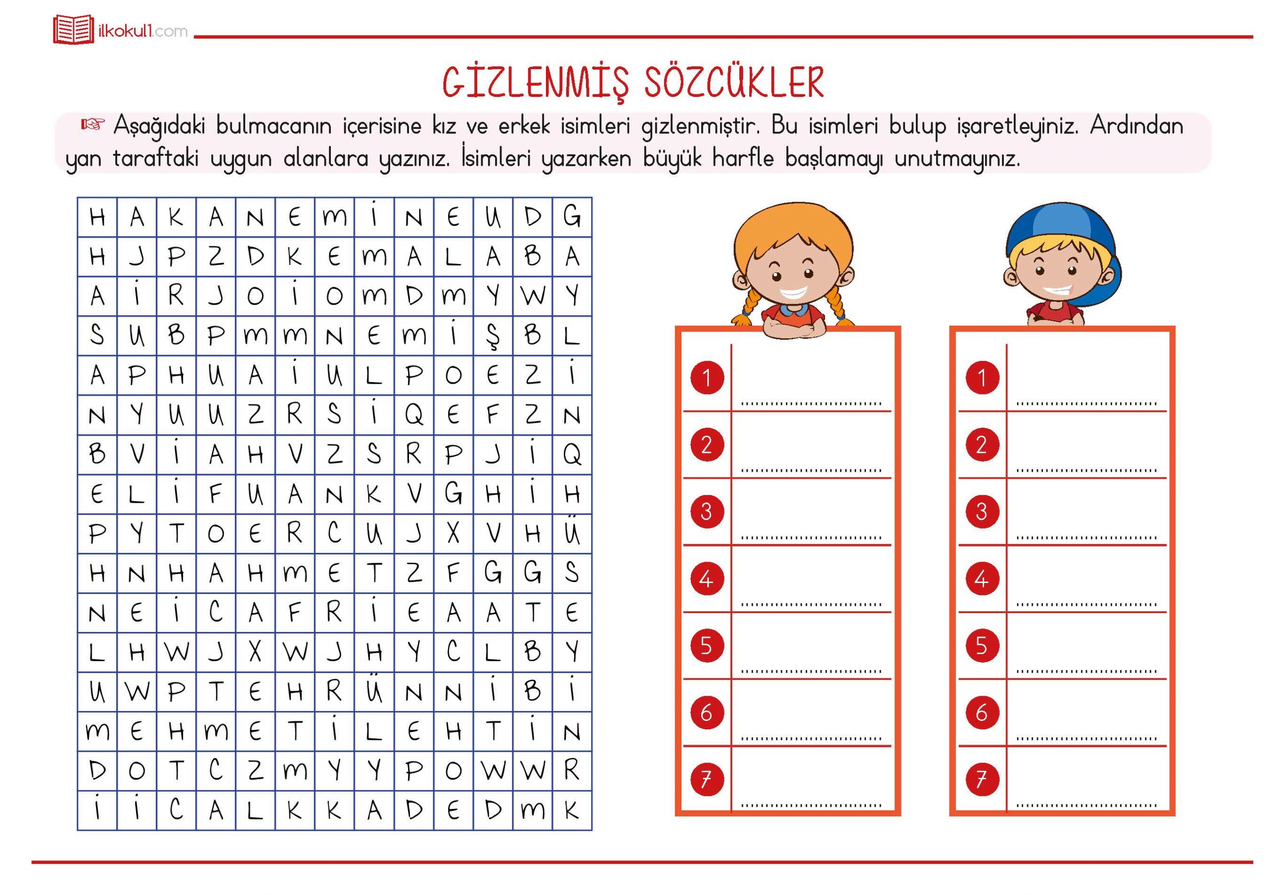 1. Sınıf Türkçe Bulmaca Etkinliği
