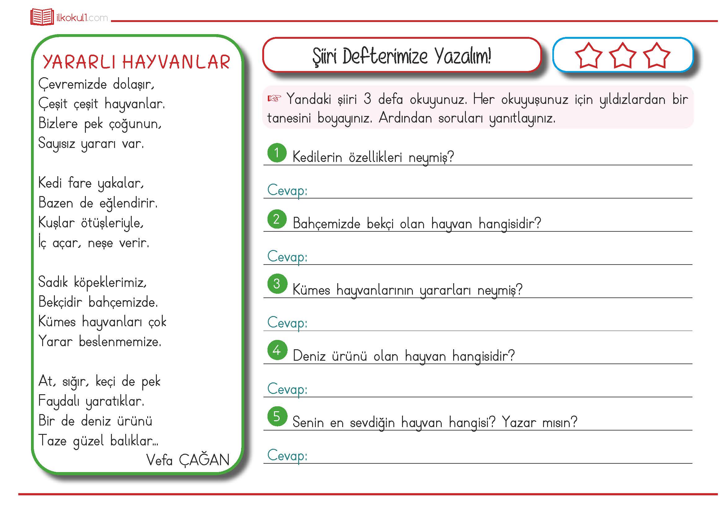 1. Sınıf Türkçe -Şiir Okuma Anlama Etkinliği...