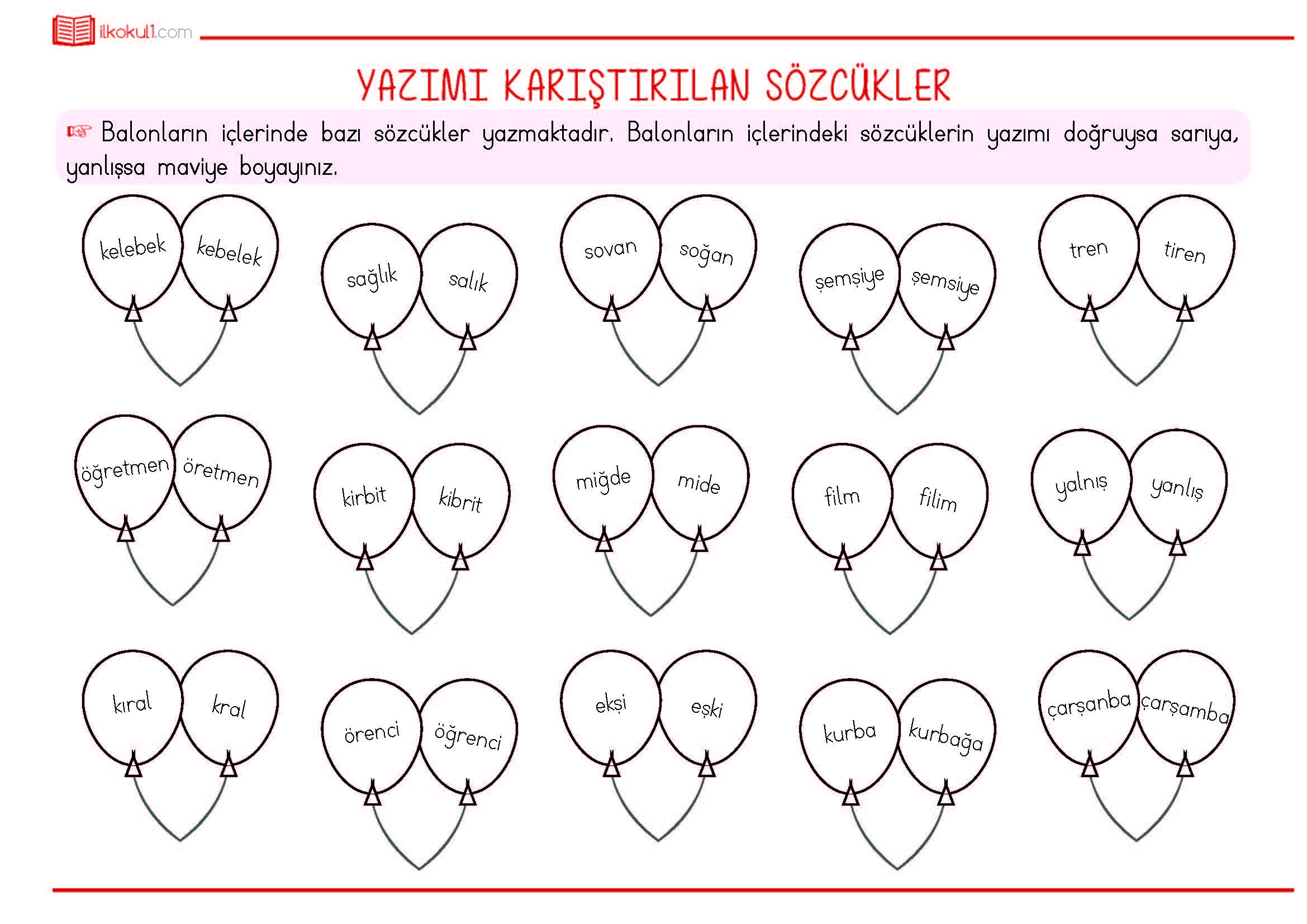 1. Sınıf Türkçe -Yazımı Karıştırılan Sö...