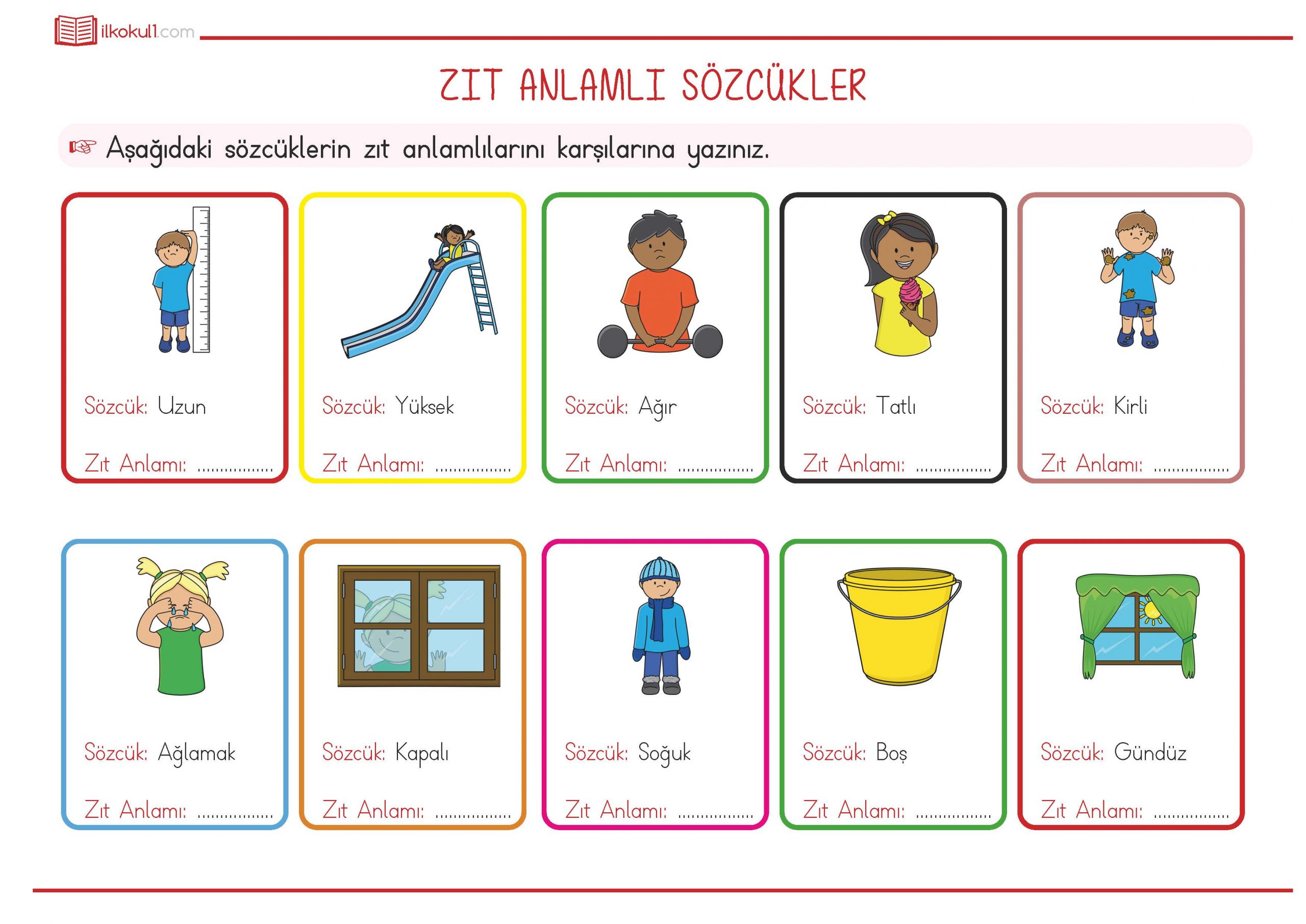 - 1. Sınıf Zıt Anlamlı Sözcükler Çalışmaları