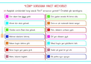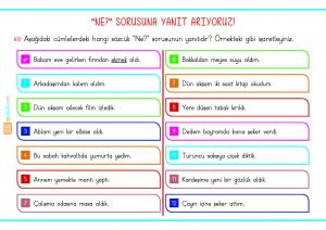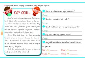 Türkçe dersi için okuma anlama çalışmaları, dilbilgisi etkinlikleri..