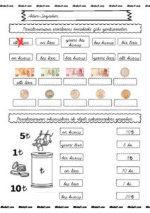 1. Sınıf Paralarımız Çalışma Kağıtları