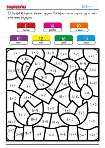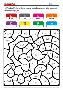 • Renkli Toplama İşlemleri: Toplama işlemlerini yapıp buldukları sonuçlara göre resimleri uygun renklerle boyayarak eğlenirken öğrenirler.