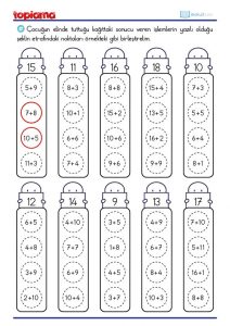 • Toplama İşlemleri ve Sonuçları Eşleştirme: Verilen toplama işlemlerini doğru sonuçlarla eşleştirerek temel toplama becerilerini pekiştirirler.