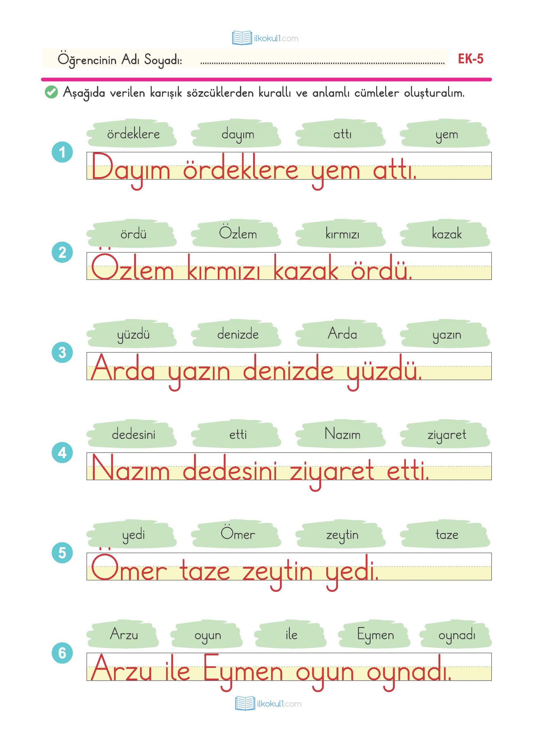 1. Sınıf Türkçe dersi için özgün ve müfredatta tanımlandığı biçimde biçimlendirici değerlendirme çalışması hazırladık.