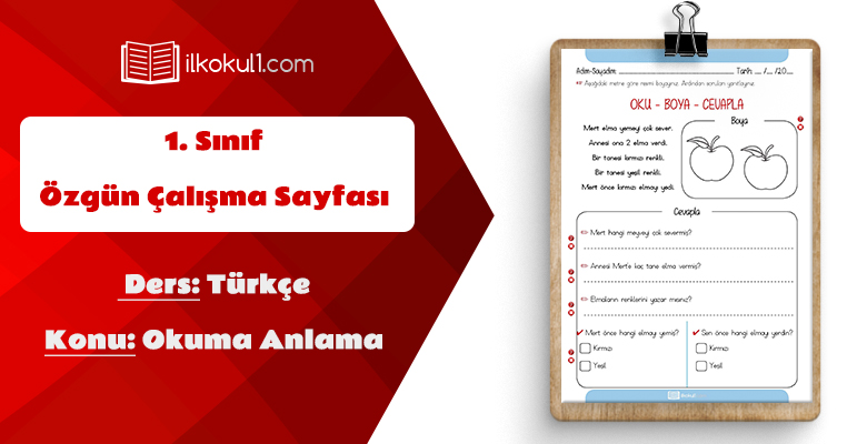 1. Sınıf Türkçe Dersi Okuma Anlama Etkinlik Sayfası