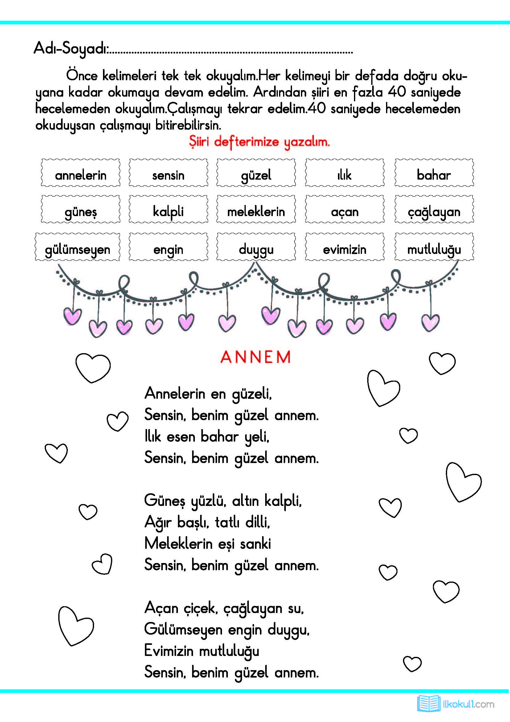 1.Sınıf Anneler Günü Çalışmalarını Aşağıdaki Butondan İndirebilirsiniz