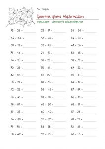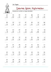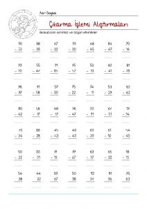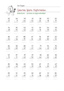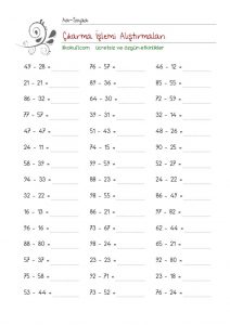 Onluk bozmadan veya bozarak yapılacak 2 basamaklı sayılarla 10 farklı alıştırma sayfası. Alıştırma sayfalarını aşağıdaki küçük resimlerin üzerine tıklayarak bilgisayarınıza indirebilirsiniz.