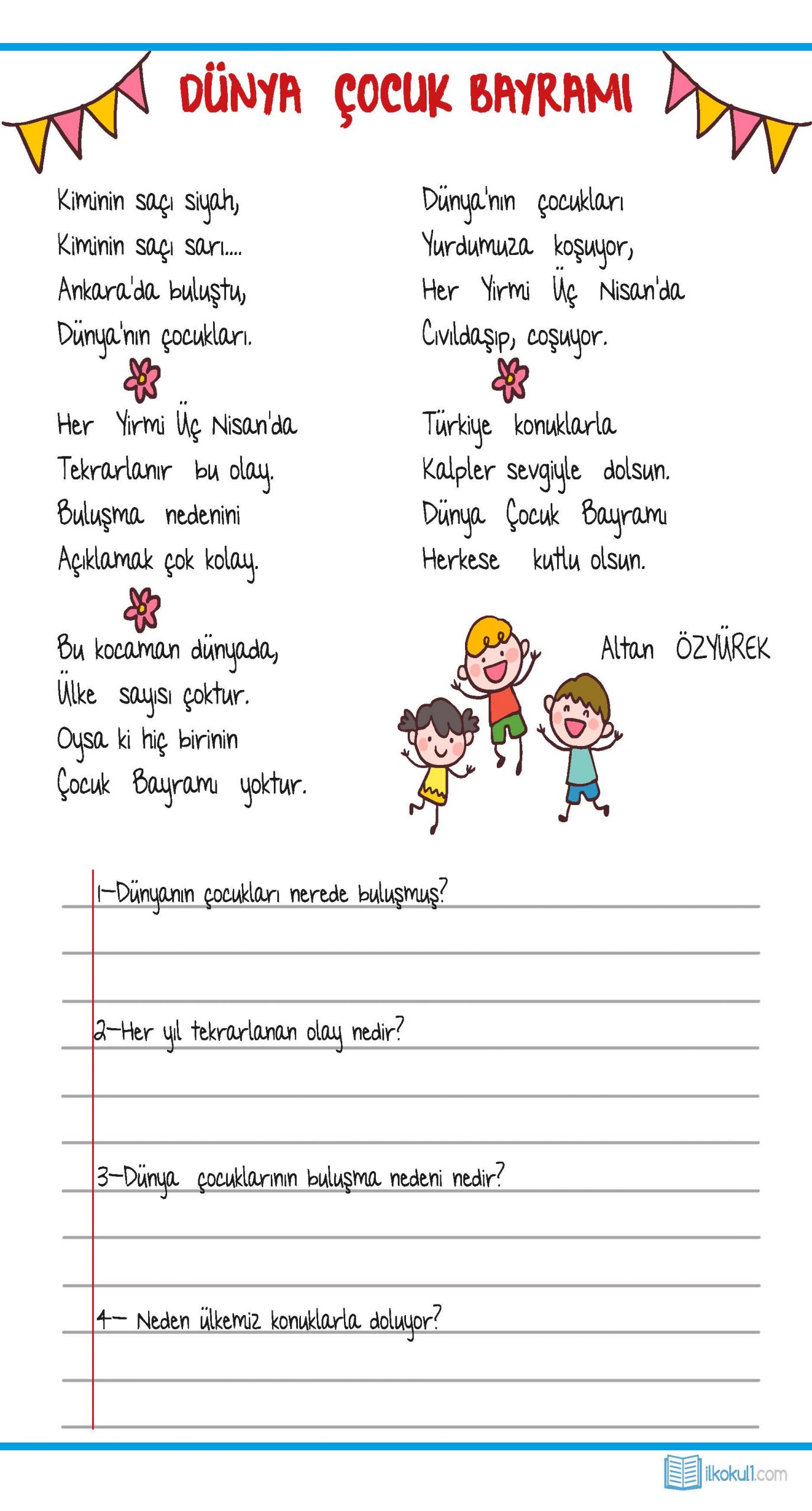 2. Sınıf Türkçe 23 Nisan Şiir Okuma Anlama
