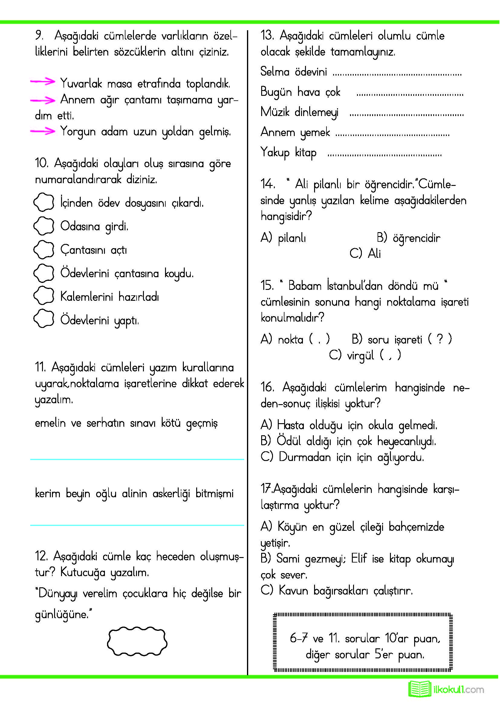 2. Sınıf Türkçe Genel Değerlendirme Sınavı