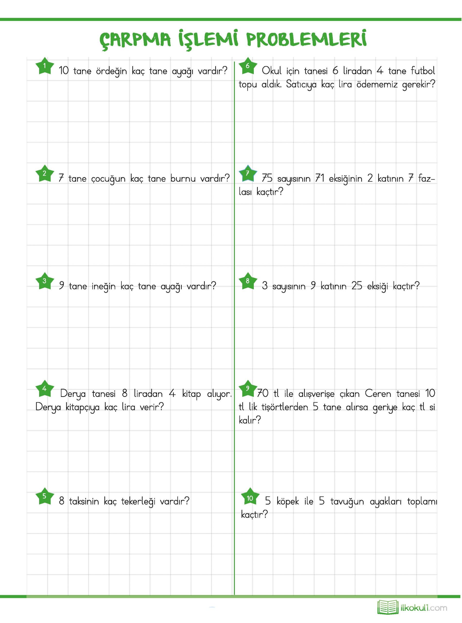 Matematik 2. Sınıf Çarpma İşlemi Problemleri ...