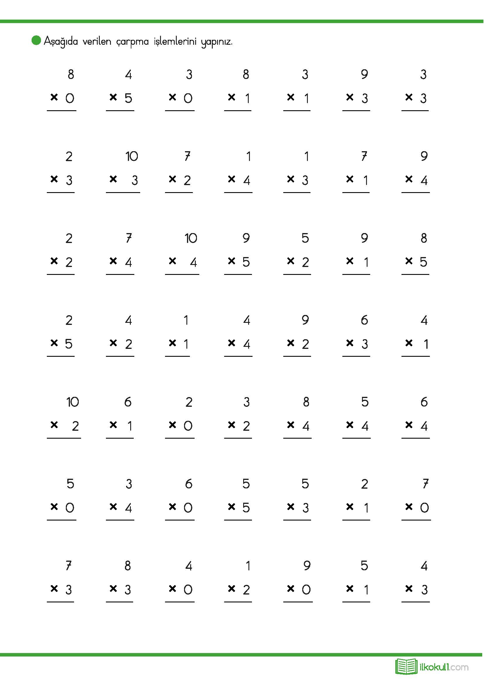2. Sınıf Matematik Karışık Çarpma Alıştır...