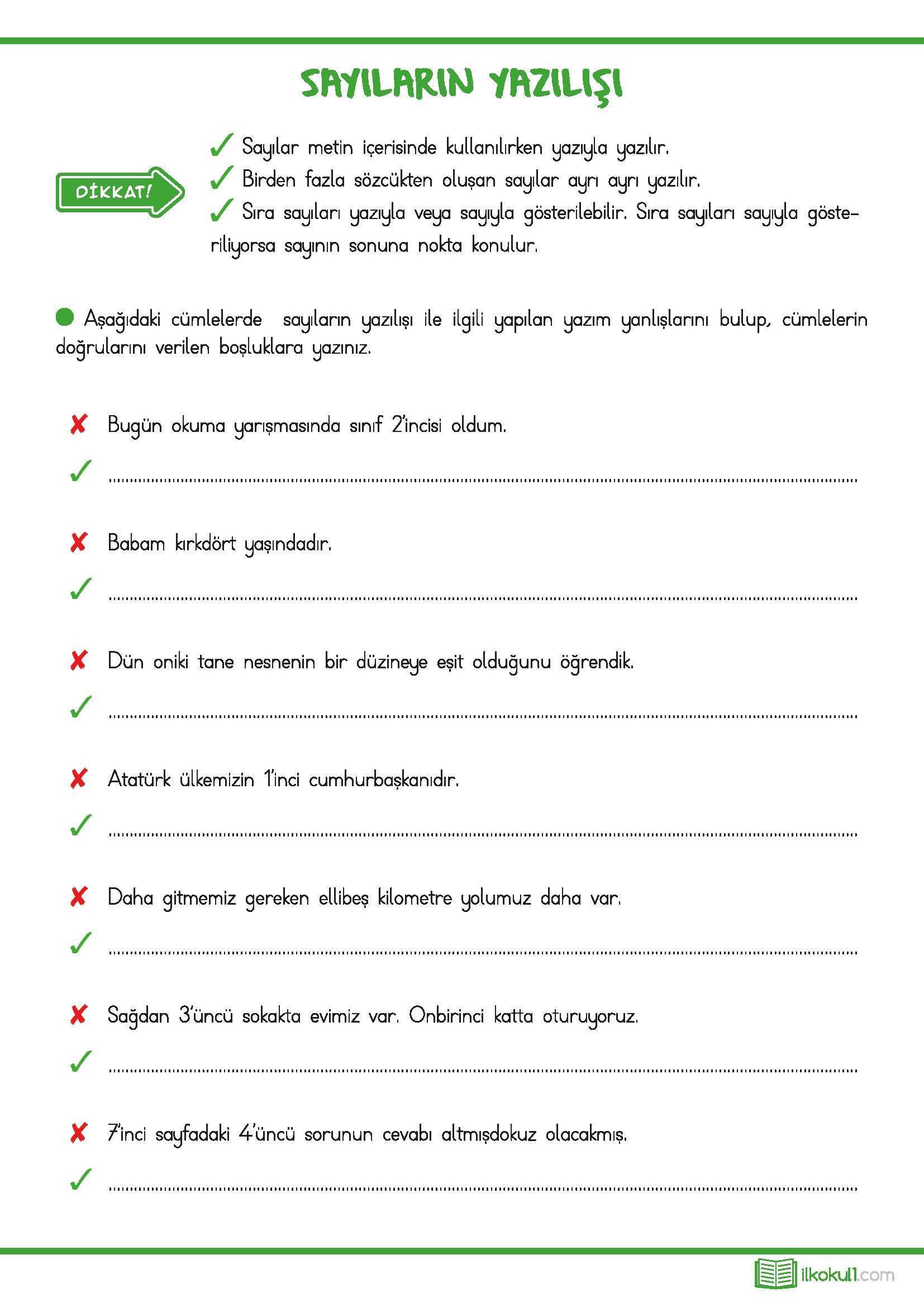 Türkçe 2. Sınıf Sayıların Yazılışı Etkin...