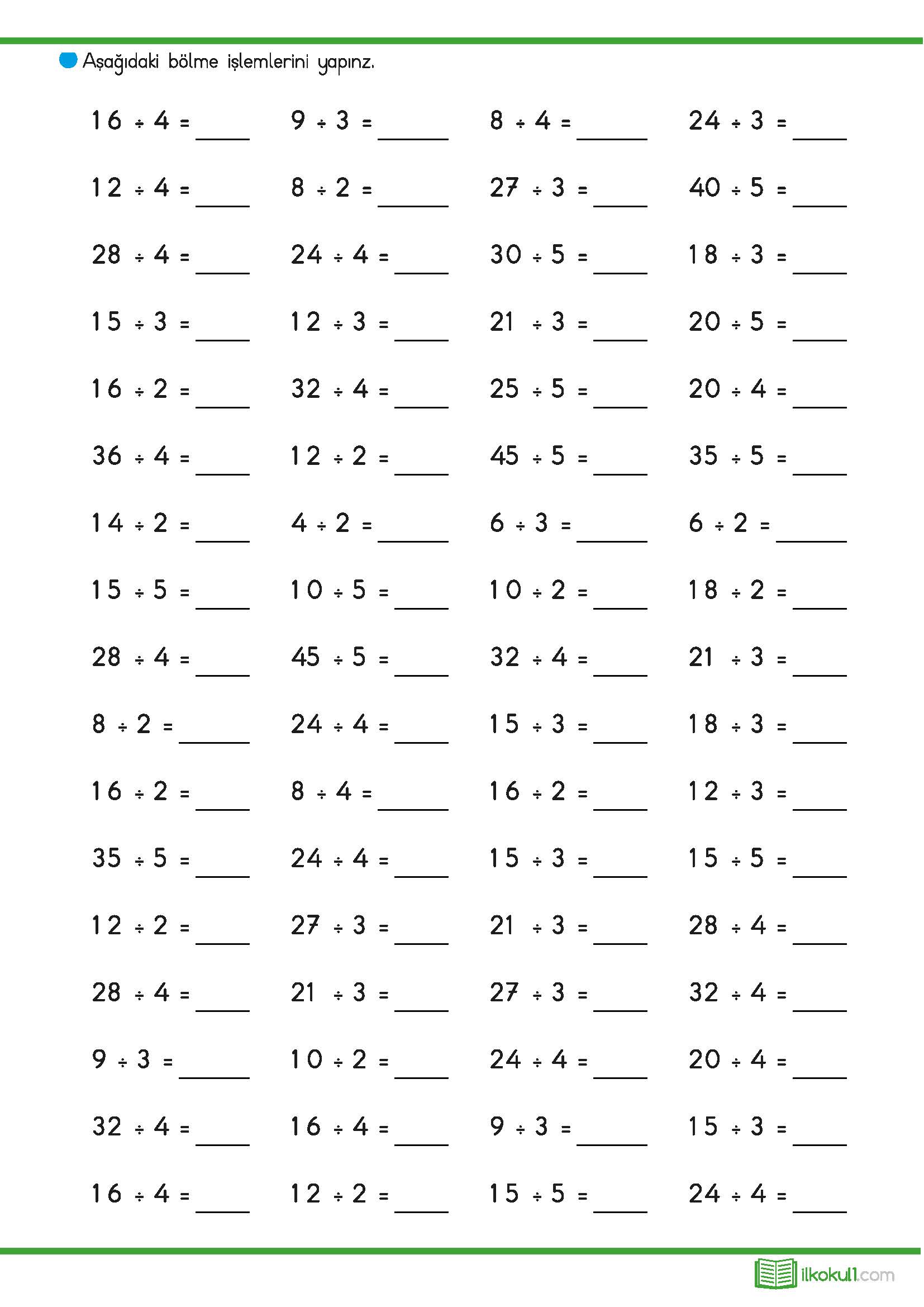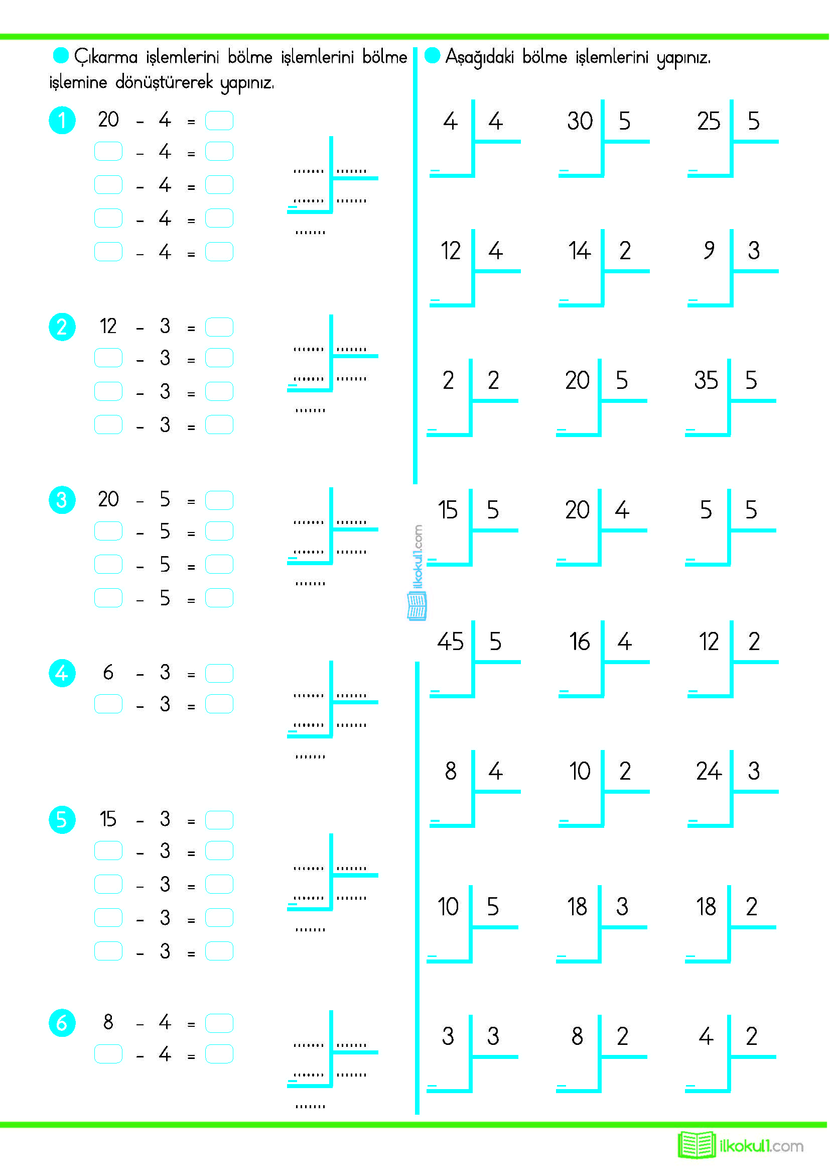 - Bölme İşlemi Etkinlikleri