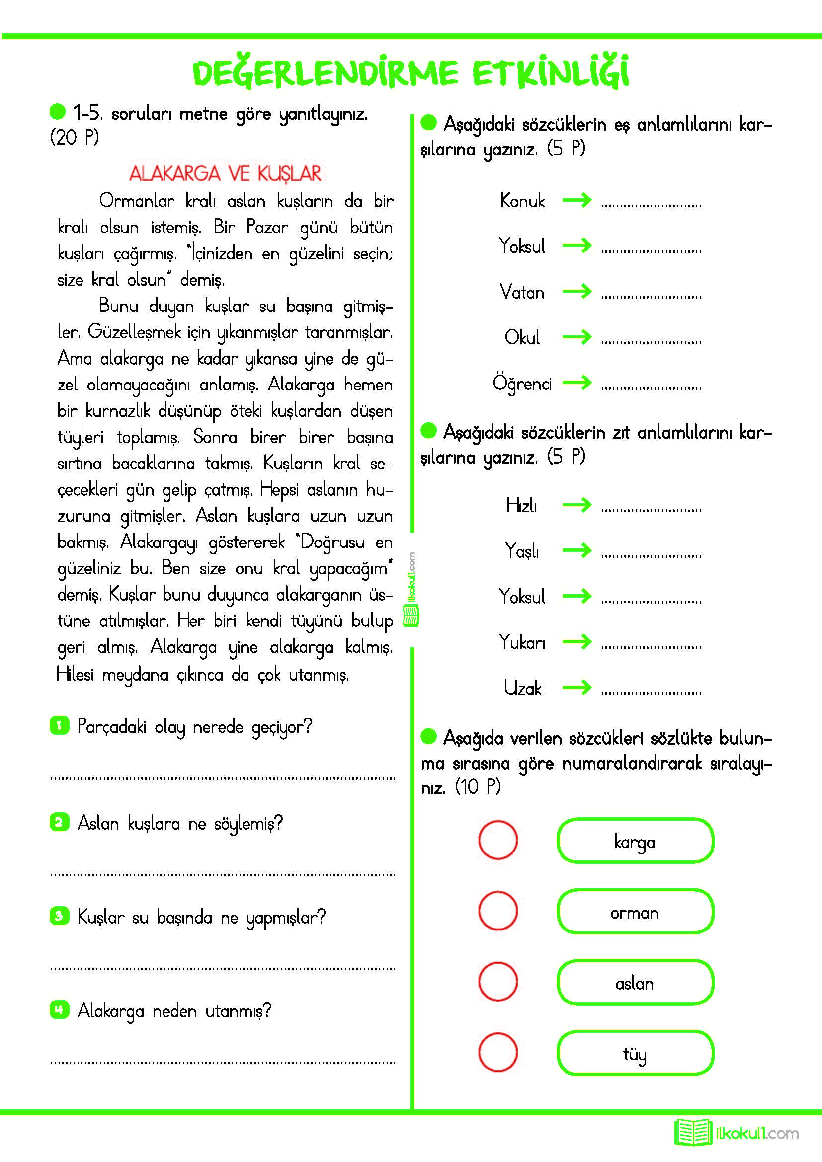 2. SINIF GÜNLÜK ÖDEVLER 2. DÖNEM 5. HAFTA KONULARI: