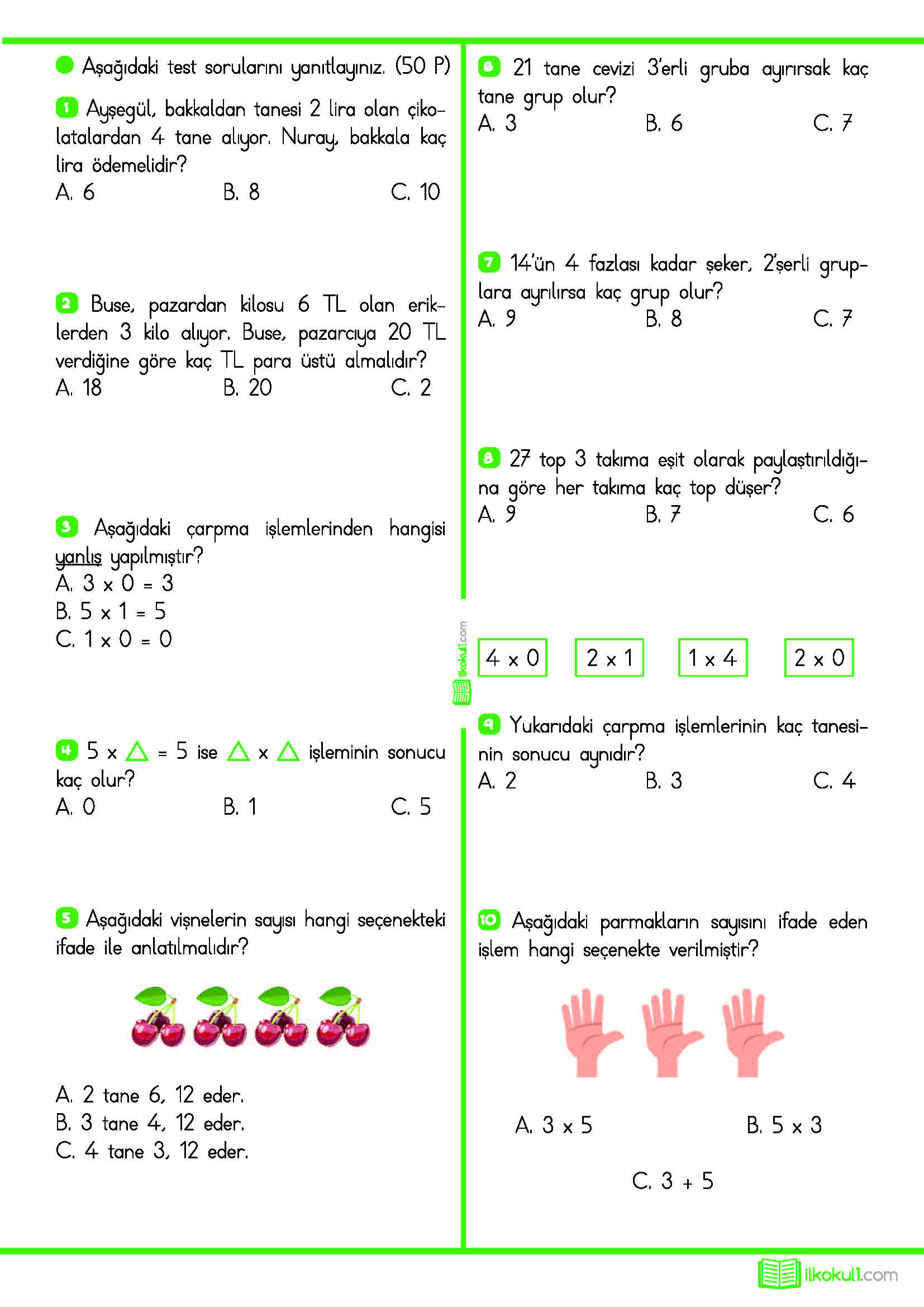 2. Sınıf Matematik Çarpma ve Bölme Değerlendi...
