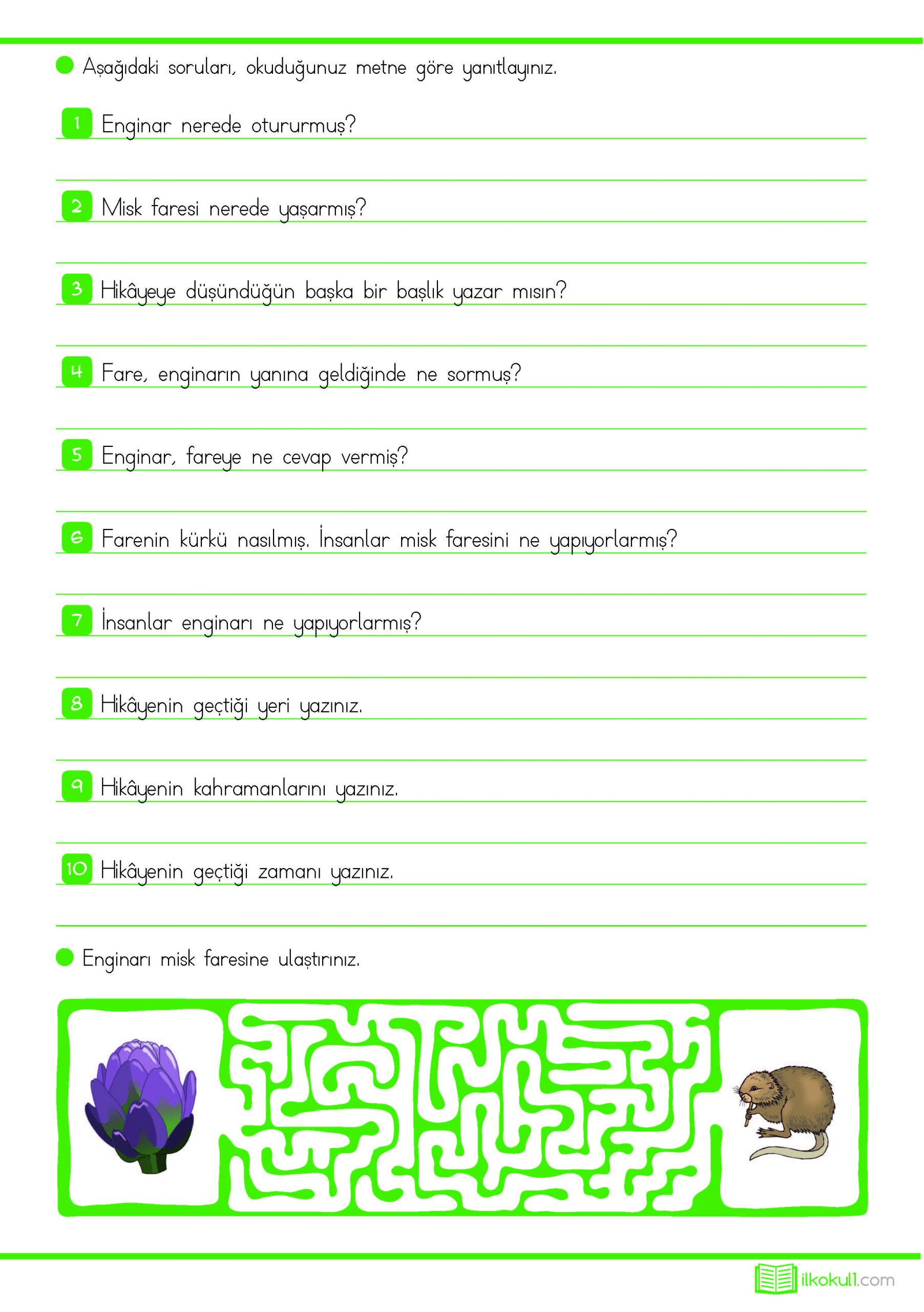 2. Sınıf Türkçe Okuma Anlama Metni -Enginar ve...