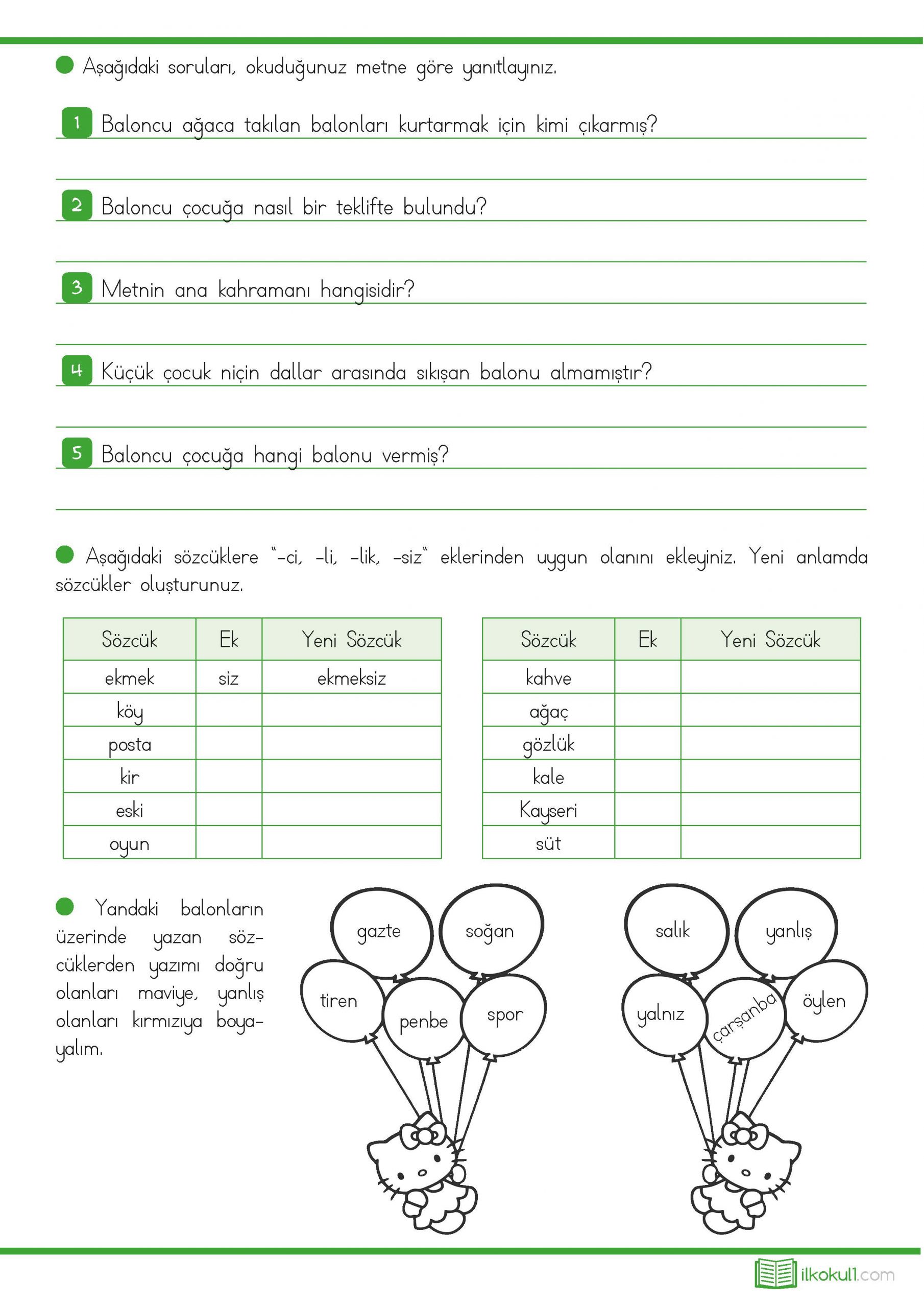 2. Sınıf Türkçe Okuma Anlama Metni -Ağaçtaki...