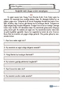 2. Sınıf düzeyinde okuma-anlama ve devamında test etkinliği. Okuduğunu anlama ve test etkinliği özgün bir çalışmadır. Dik temel harfler kullanılarak, diğer bir deyişle düz yazı ile hazırlanmış okuma anlama ve test etkinliğini aşağıdaki küçük resme tıklayarak bilgisayarınıza indirebilirsiniz.